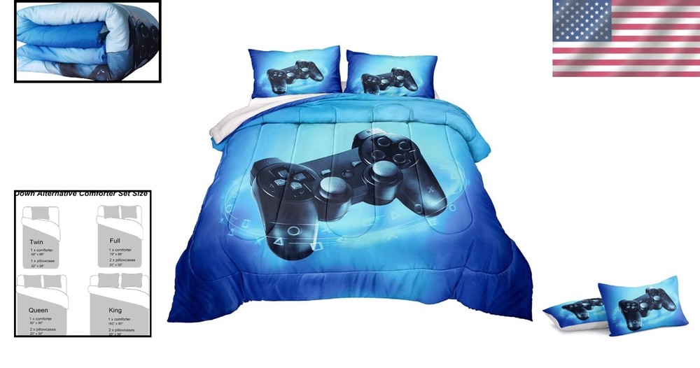 Lightweight Gamer Comforter Set for Boys - Stylish Video Game Bedding < class="slides"> ‹ › ‹ › ‹ › ‹ › ‹ › ‹ › Lightweight Gamer Comforter Set Transform your gaming sanctuary with our stylish Video Game Bedding – an ultimate comfort solution for boys who love immersive gaming experiences! Product Details: <> Size: Full Size Comforter Set includes 1 comforter (79 x 90 inches) and 2 pillowcases (20 x 30 inches). Material: Crafted with 100% polyester filling, this comforter envelops you in softness, ensuring warmth and coziness across all seasons. Unique Design: Features an eye-catching game pattern, perfectly reflecting your gamer spirit. The colors are crafted to be uniform and natural, promising no fading over time. Fluffy and Lightweight: Enjoy blissful sleep without any downward pressure. This comforter is fluffy yet lightweight, allowing for effortless movement. Easy Care: Maintenance is a breeze! Machine wash in cold water with a gentle cycle and tumble dry on low. Wrinkles may occur due to compact packaging; simply fluff in the dryer for a fresh, fluffy look. Why Choose Our Gamer Comforter Set? Not just a bedding set, but a statement piece that embodies your passion for gaming. With its soft, breathable fabric, say goodbye to restless nights and hello to incredible comfort. Perfectly designed to fit your gaming lifestyle while elevating your room décor, this set is a dream come true for every young gamer. Don’t compromise on your comfort or style. Elevate your gaming experience with our Lightweight Gamer Comforter Set – your ultimate bedding companion. Order now to level up your sleep space! Shipping <> <> Free & Fast Shipping - We offer free shipping to most of the USA with a normal delivery time of 3-7 days. However, due to the current situation, additional delivery time (up to 3 weeks) may be required for some items. Alternative Carriers - We may use alternative carriers (e.g. USPS, FedEx, UPS, etc.) to ensure your package arrives safely and on time. Due to the use of multiple carriers, we are unable to provide a tracking number automatically. Handling Time - Orders are processed and shipped within 1-2 business days of receiving cleared payment. Shipping Restrictions - Shipping to Alaska, Hawaii, Puerto Rico, Guam, and other US territories may incur shipping charges or delivery restrictions. Please contact us before ordering, or your order can be refunded/cancelled. State Restrictions - There may be restrictions based on your state of purchase. For example, certain items may not be shipped to California due to state regulations. Contact for Tracking Updates - If you require tracking updates or have any concerns about the delivery of your order, please feel free to contact us, and we will be happy to assist you. Return <> <> 30-Day Hassle-Free Returns - We want you to be completely satisfied with your purchase. If you are not, you can return the item within 30 days of receiving it for a full refund or exchange. Easy Return Process - To start a return, simply contact us and we will provide you with a prepaid return shipping label and detailed instructions. Restocking Fee - There are no restocking fees for returns. However, the buyer is responsible for return shipping costs if the return is not due to a seller's error. Refund Processing Time - Refunds will be processed within 5 business days of receiving the returned item in its condition. Payment We accept all major credit cards, PayPal, and Apple Pay for your convenience. Your payment information is secure and encrypted to ensure a safe and seamless transaction. Please complete your payment within 3 days of purchase to avoid any delays in shipping. Feedback Your feedback is extremely important to us. We strive to provide the best products and customer service possible. If you are satisfied with your purchase, please take a moment to leave us a positive review. If you have any concerns or issues with your order, please contact us before leaving negative feedback. We are committed to resolving any problems and ensuring your satisfaction. Contact Us If you have any questions or concerns, please feel free to out to our customer support team. You can contact us through the eBay messaging system. We are available Monday to Friday, 9:00 am to 5:00 pm EST, and we will do our best to respond to your inquiry within 24 hours. Buy it now and enjoy a pleasant shopping experience! Set Includes: Comforter,Pillowcase Material: Polyester,100% Polyester Features: Breathable,Lightweight,Soft,Cozy Theme: Video Games Care Instructions: Do Not Bleach,Machine Wash,Tumble Dry on Low Heat Department: Kids,Teens Room: Bedroom Size: Full Type: Comforter Set Color: Game Console Fill Material: Polyester Pattern: Video Game Number of Items in Set: 3 Style: Contemporary Insulation: All Seasons Season: All Closure Type: No Closure Thread Count: 200 or Less GSM (Grams per Square Meter): Below 150