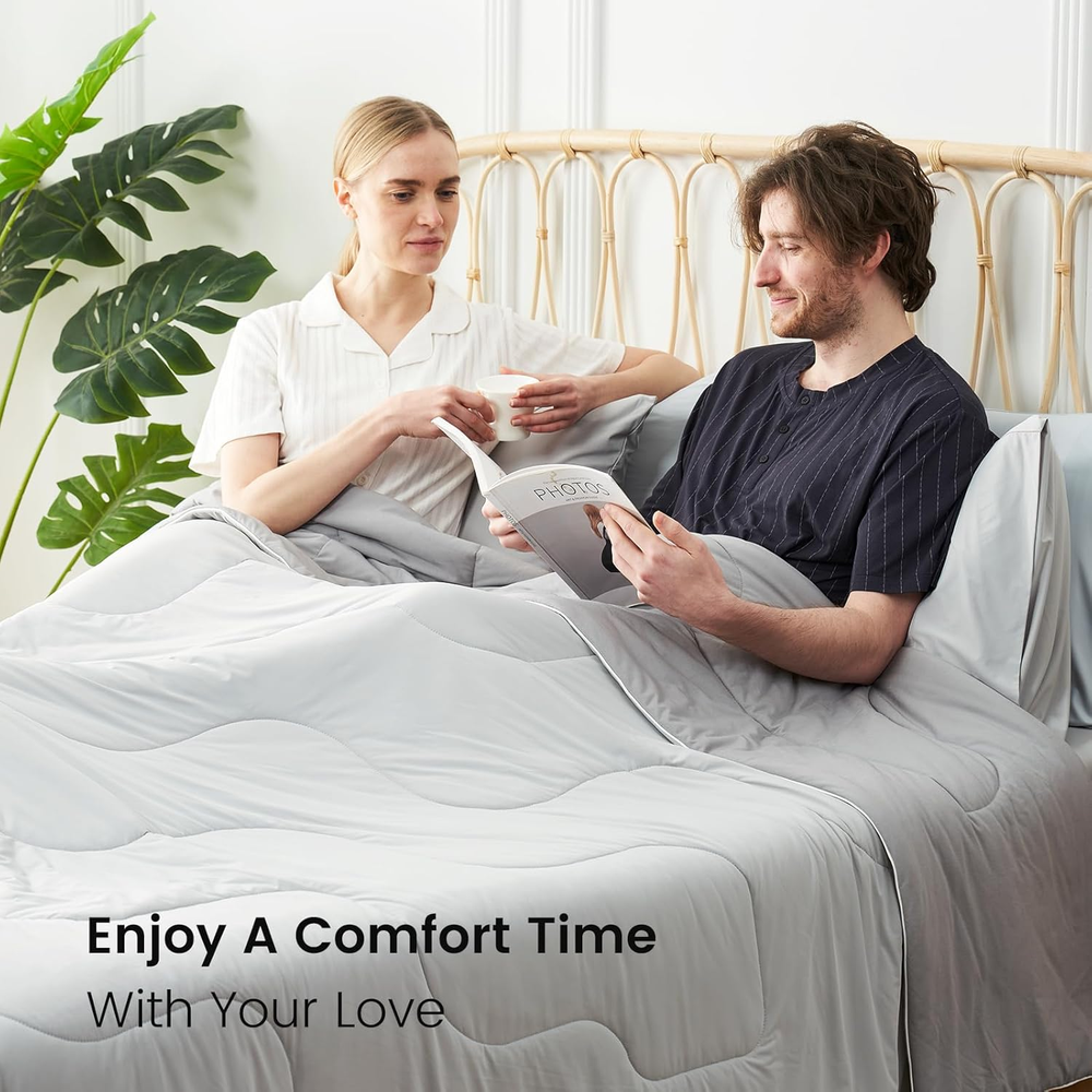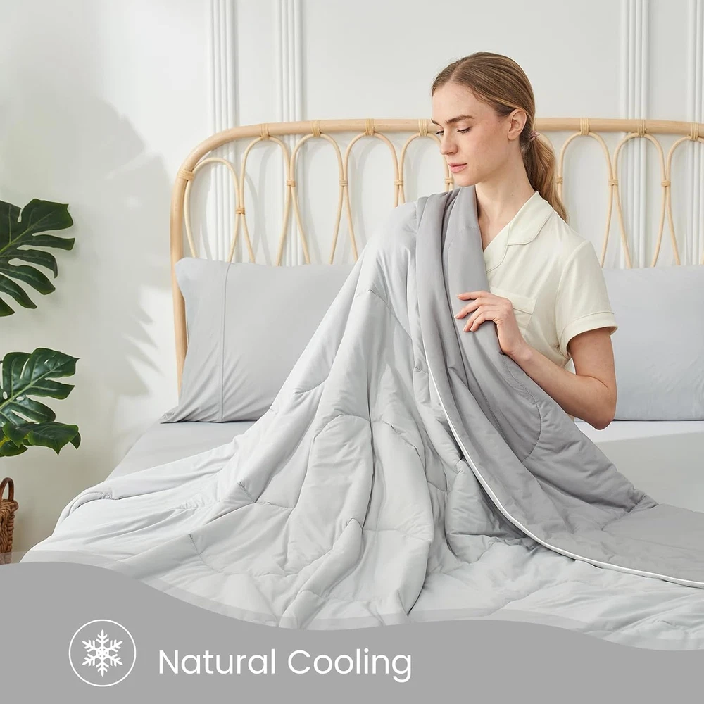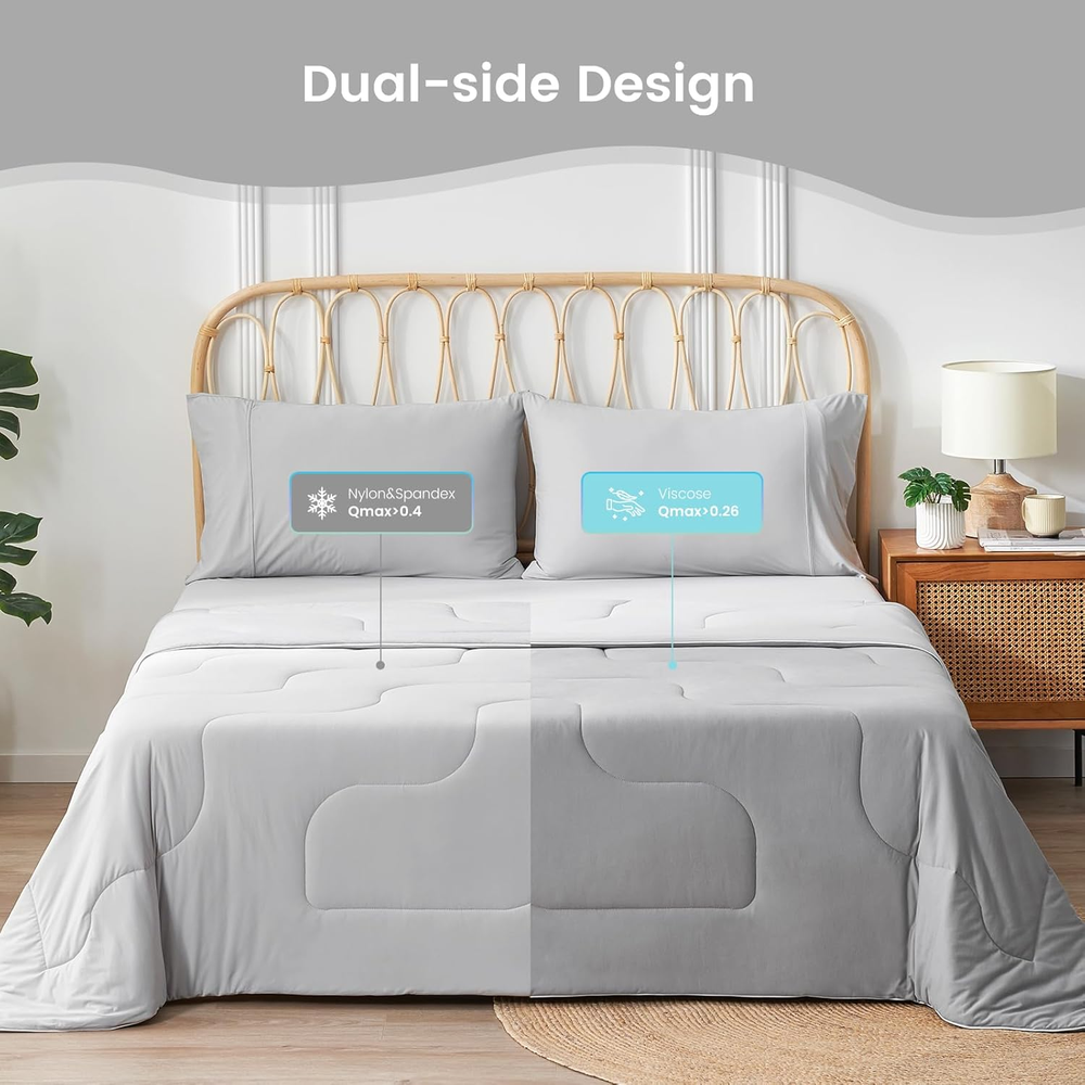 Store New Arrivals Add to Favorite View Feedback Contact Lightweight Natural Cooling Comforter King Size, Q-Max 0.4 Soft Breathable Cooling Blanket, Silky Smooth Summer Comforter for Night Sweats and Families, Cool Grey Description Style Modern Product Dimensions 106"L x 90"W Color Cool Grey Pattern Abstract Material Nylon, Spandex Item Weight 6.8 pounds Theme Modern Fill Material Sorona® Fiber Age Range (Description) Adult Size King(106"*90") Special Feature Cooling Fabric Type Viscose, Polyester; Cooling Nylon, Spandex 【DOUBLE-SIDED DESIGN COOL Comforter】Double-sided cool comforter for sleeping, Cozy Bliss cooling comforter has a 0.4 Q-max side made of Nylon and Spandex for a natural cool feeling. It also has a 0.26 Q-max cooling Viscose side, which is ultra cooling at a touch. 【EXTRA BREATHABLE& LIGHTWEIGHT】Cozy Bliss lightweight cooling comforter use the super soft OEKO-TEX certified fabric, filled with Sorona fiber to form a Helical structure with high elasticity and good air permeability, allowing you to enjoy a super-fluffy feeling while sleeping. Indulge in luxurious comfort with our lightweight King-size cooling Comforter. Ideal for grand beds and hot sleepers, it delivers relaxation for families seeking a coziness, breathable solution to restful nights. 【NO SWEATS】Experience a cloud-like touch of softness and luxury with our premium yarn and filling, 70% viscose derived from wood is naturally breathable, moisture-wicking, and thermo-regulating, delivering exceptional breathability for the sweat-less comfort all year round. 【GIFT CHOICE】Say goodbye to sweat and enjoy a deep, peaceful sleep. The trendy two-tone look adds a unique touch to your cooling experience while enhancing your bedroom's visual appeal. This pet-friendly comforter is a perfect gift, which more than just cooling—it's a statement of modern comfort and elegance by Cozy Bliss. 【EASY CARE】Fall in love at first touch with the soft and sensitive skin-friendly fabric; Lightweight yet densely woven, the knitted fibers are 5x thinner and stronger than silk; This washable and dryer-safe Comforter stays luxuriously soft after every wash. It's the ultimate choice for anyone seeking comfort, freshness, and relaxation. For better results, it's suggested to wash the comforter before the first use. Product Description The video showcases the product in use. The video guides you through product setup. The video compares multiple products. The video shows the product being unpacked. Our Comforter is Made For Every Moment Skin-Friendly Pet-Friend Hair-Resistance Lightweight&Breathable - Best Companion For Restful Night Have a Cooling Relief No Matter The Season 1 Dual Cooling Design 2 Sorona Tech-Upgrade 3 Skin-Friendly 4 Ultimate Coziness New Fabric Design for Your Comfort 1 Machine Washable 2 Size Reference 3 Color Available There Must Be One You Like! Add to Cart Add to Cart Add to Cart Add to Cart Add to Cart Customer Reviews 4.8 out of 5 stars 33 4.8 out of 5 stars 33 4.8 out of 5 stars 33 4.8 out of 5 stars 33 4.8 out of 5 stars 33 Price $169.99 $ 169 . 99 $169.99 $ 169 . 99 $169.99 $ 169 . 99 $169.99 $ 169 . 99 $169.99 $ 169 . 99 Features Dual-sided Coolness Dual-sided Coolness Dual-sided Coolness Dual-sided Coolness Dual-sided Coolness Fill Material Sorona Fiber Sorona Fiber Sorona Fiber Sorona Fiber Sorona Fiber Fabric 1 70%Viscose, 30%Polyester 70%Viscose, 30%Polyester 70%Viscose, 30%Polyester 70%Viscose, 30%Polyester 70%Viscose, 30%Polyester Fabric 2 90%Nylon, 10%Spandex 90%Nylon, 10%Spandex 90%Nylon, 10%Spandex 90%Nylon, 10%Spandex 90%Nylon, 10%Spandex Size Available Twin, Queen, King Twin, Queen, King Twin, Queen, King Twin, Queen, King Twin, Queen, King Skin-Friendly ✔ ✔ ✔ ✔ ✔ Pet-Friendly ✔ ✔ ✔ ✔ ✔ Machine Washable ✔ ✔ ✔ ✔ ✔ ABOUT US We offer the best prices around on high quality products. Our E-store includes media such as books, movies, music and games while offering electronics, toys, sporting apparel, clothing, tools, general home, garden items and more. SHIPPING We are always working hard to ensure your package arrives as soon as possible. Please understand that some factors like weather, high postal traffic, and the performance of shipping companies are outside of our control. We offer free shipping to the lower 48 states and ship within 2 business days of payment, usually sooner. We do not accept P.O. Boxes. Please provide a physical address. For shipping outside of the continental USA, we only use eBay's Global Shipping Program.The item is shipped to KY and then sent to the rest of the world. International customers are responsible for all duties and taxes. Continue to check out in order to calculate costs for shipping the item to your country. Messages regarding eBay's Global Shipping Program MUST be directed at eBay EXCLUSIVELY. RETURNS We offer a 30-Day Return Policy on items which you are not completely satisfied with. You have the option for a full-refund or an exchange of the item. No returns are available on items shipped outside of the USA. PAYMENT We accept PayPal. CONTACT US This page content is yet to come Please ad us to your favorite seller and visit again later Thank You CUSTOMER SATISFACTION We try our very best to make sure every customer is completely satisfied. If there's a problem, message us! We're happy to help.