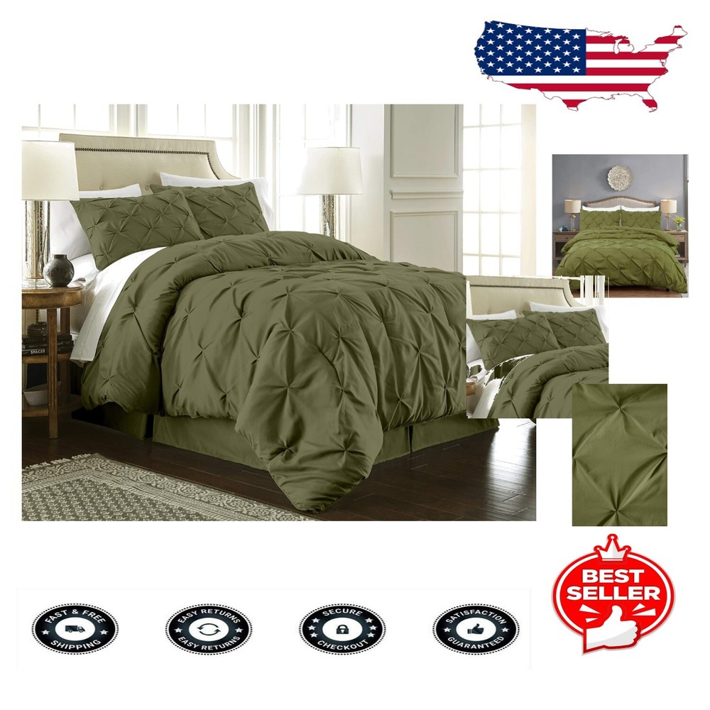 Lightweight Olive Green Pinch Pleat Comforter Set - Cozy All-Season Bedding ‹ › ‹ › ‹ › ‹ › ‹ › ‹ › ‹ › ‹ › ‹ › ‹ › ‹ › Lightweight Olive Green Pinch Pleat Comforter Set Cozy All-Season Bedding Berlin 3-Piece Comfort Set Includes: 1 Comforter 2 Shams Full Size Measurements: Comforter: 86" W x 88" L Shams: 20" x 26" Elegant Design: This stunning comforter set features a solid olive green color paired with a classic pinch pleat style, adding a touch of luxury and sophistication to your room decor. Its charming visual upgrade effortlessly transforms your bedroom into a stylish retreat, fostering a serene atmosphere. Premium Materials: Crafted from 95GSM brushed microfiber polyester for a soft, smooth feel. Filled with 220GSM microfiber, achieving the perfect balance of warmth and lightness. Ensures year-round comfort, keeping you cozy yet refreshed after a blissful night's sleep. Easy Care: Machine washable in cold water for hassle-free cleaning. Tumble dry on low; do not bleach. Why Choose the Berlin Pinch Pleated Comforter Set? Elevate your bedroom's aesthetic with our classic, contemporary comforter set, designed in a luxurious pinch-tuck style. Crafted for both style and comfort, this bedding ensemble is the perfect addition to your sanctuary. Enjoy the soft embrace of premium materials, ensuring a restful sleep experience while enhancing your space's charm. Transform your bedroom into a haven of tranquility and sophistication today! Shipping Free & Fast Shipping - We offer free shipping to most of the USA with a normal delivery time of 3-7 days. However, due to the current situation, additional delivery time (up to 3 weeks) may be required for some items. Alternative Carriers - We may use alternative carriers (e.g. USPS, FedEx, UPS, etc.) to ensure your package arrives safely and on time. Due to the use of multiple carriers, we are unable to provide a tracking number automatically. Handling Time - Orders are processed and shipped within 1-2 business days of receiving cleared payment. Shipping Restrictions - Shipping to Alaska, Hawaii, Puerto Rico, Guam, and other US territories may incur shipping charges or delivery restrictions. Please contact us before ordering, or your order can be refunded/cancelled. State Restrictions - There may be restrictions based on your state of purchase. For example, certain items may not be shipped to California due to state regulations. Contact for Tracking Updates - If you require tracking updates or have any concerns about the delivery of your order, please feel free to contact us, and we will be happy to assist you. Return 30-Day Hassle-Free Returns - We want you to be completely satisfied with your purchase. If you are not, you can return the item within 30 days of receiving it for a full refund or exchange. Easy Return Process - To start a return, simply contact us and we will provide you with a prepaid return shipping label and detailed instructions. Restocking Fee - There are no restocking fees for returns. However, the buyer is responsible for return shipping costs if the return is not due to a seller's error. Refund Processing Time - Refunds will be processed within 5 business days of receiving the returned item in its original condition. Payment We accept all major credit cards, PayPal, and Apple Pay for your convenience. Your payment information is secure and encrypted to ensure a safe and seamless transaction. Please complete your payment within 3 days of purchase to avoid any delays in shipping. Feedback Your feedback is extremely important to us. We strive to provide the best products and customer service possible. If you are satisfied with your purchase, please take a moment to leave us a positive review. If you have any concerns or issues with your order, please contact us before leaving negative feedback. We are committed to resolving any problems and ensuring your satisfaction. Contact Us If you have any questions or concerns, please feel free to reach out to our customer support team. You can contact us through the eBay messaging system. We are available Monday to Friday, 9:00 am to 5:00 pm EST, and we will do our best to respond to your inquiry within 24 hours. Buy it now and enjoy a pleasant shopping experience! UPC: Not Set Model: Not Set Set Includes: Comforter,Pillow Sham Material: Microfiber,100% microfiber polyester Features: Lightweight Theme: Seasonal Character: Not Set Care Instructions: Do Not Bleach,Machine Wash Cold Department: Adults Room: Bedroom Labels & Certifications: Not Set Size: Full Type: Comforter Set Brand: Unbranded Color: Olive Fill Material: Microfiber Pattern: Solid Item Width: Not Set Item Length: Not Set MPN: Not Set Number of Items in Set: 3 Style: Contemporary Character Family: Not Set Insulation: All Seasons Season: All Country/Region of Manufacture: Not Set Closure Type: No Closure Drop Length: Not Set Thread Count: 200 or Less GSM (Grams per Square Meter): 150 to 300 Product Line: Not Set Personalize: Not Set