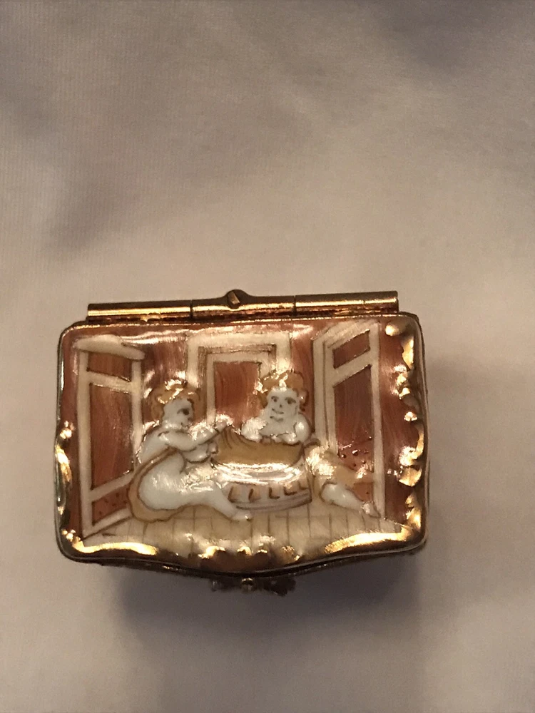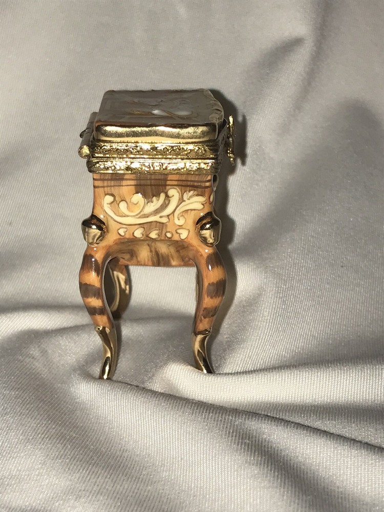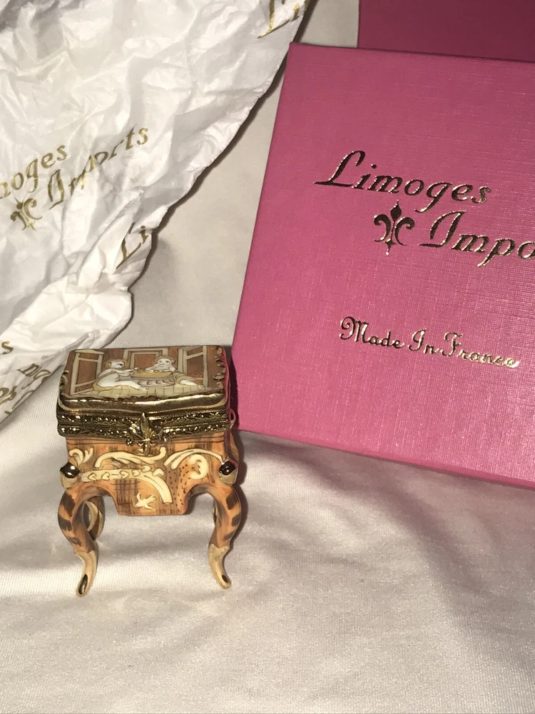 Limoges Imports France Peint Main Antique Table with artist initials painted on bottom. This beautifully hand painted limoges trinket box is made in France. The size is approximately 1 1/2" wide X 2" height. This is brand new with original box. Free shipping with USPS Priority Mail within the USA.