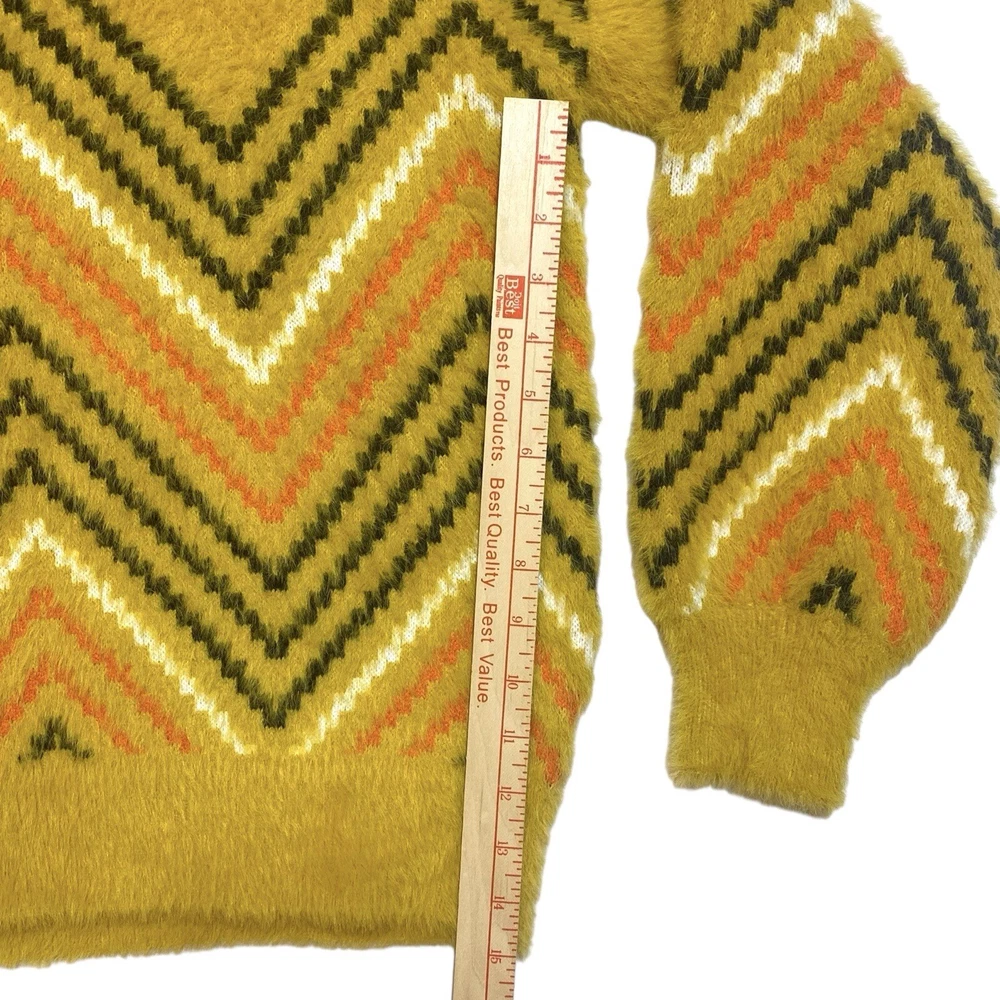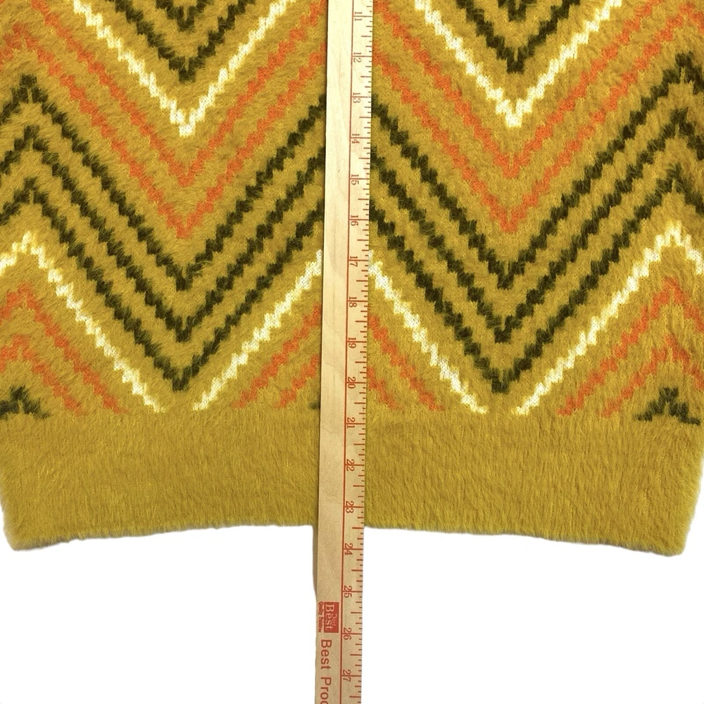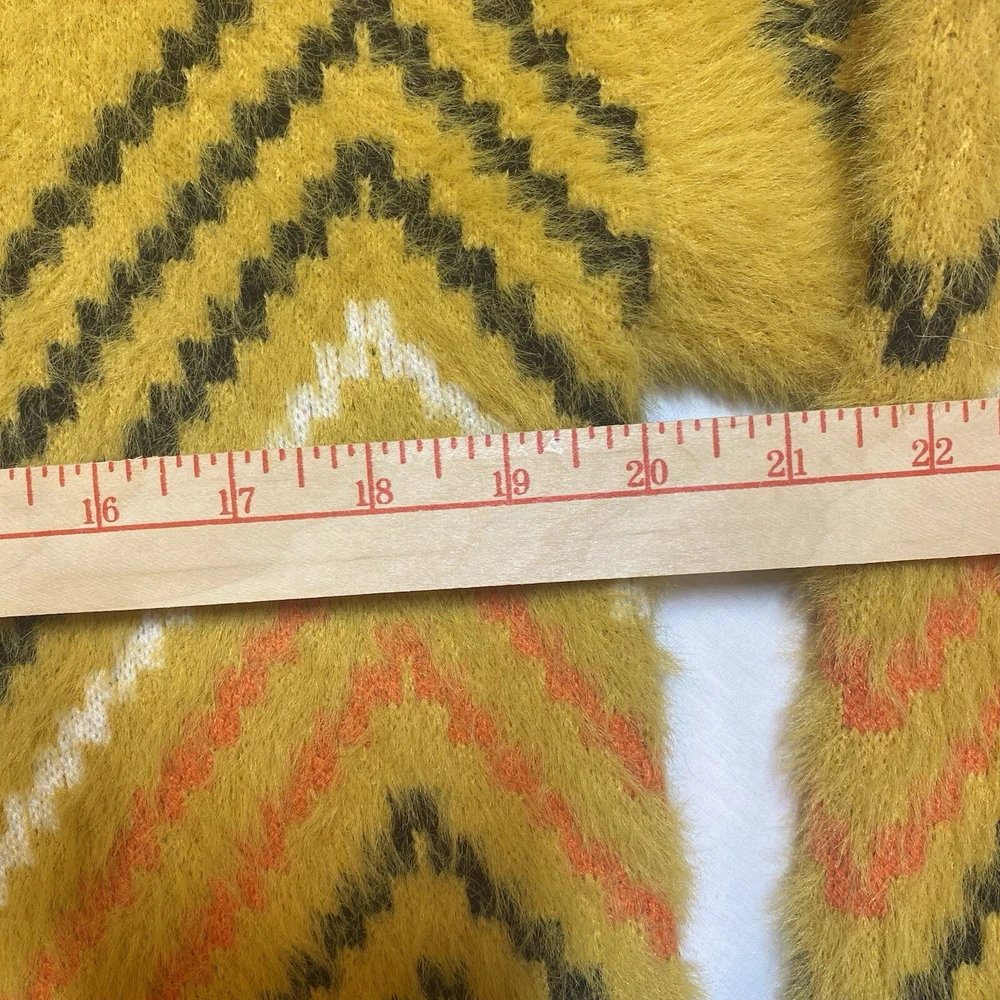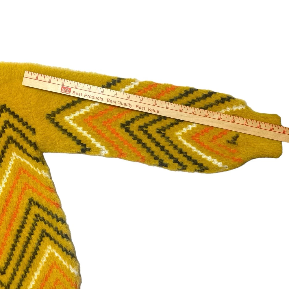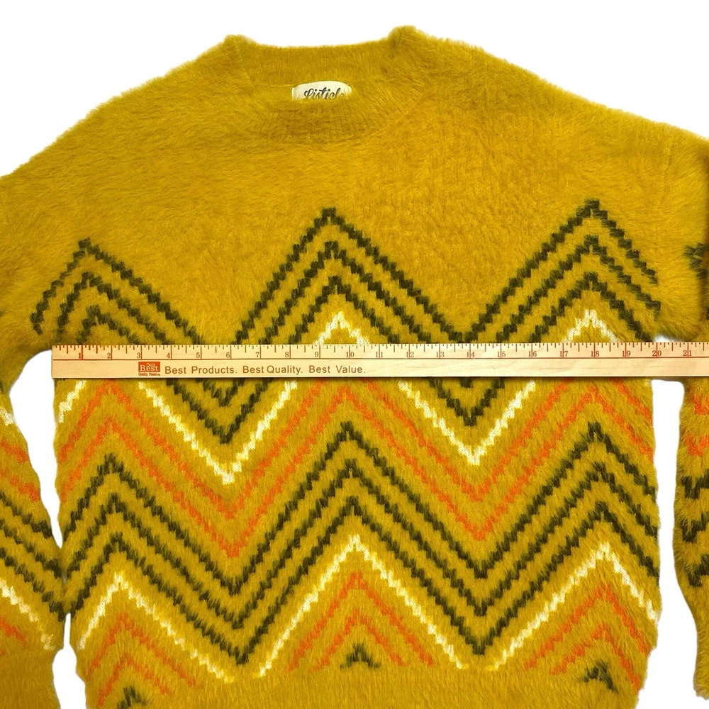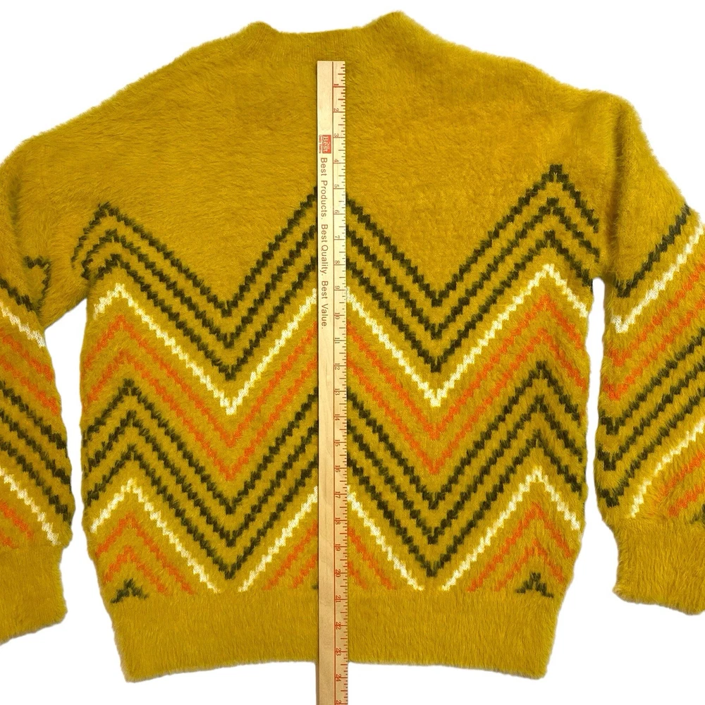 This sweater is like wrapping yourself in a cloud—so soft and cozy! The retro zig-zag pattern adds a fun boho vibe, and the oversized fit is perfect for chilly days. The material feels luxurious, like a hug from your favorite teddy bear. It’s roomy enough for layering but still stylish. The mustard color is rich and warm, making it a great fall staple. The measurements are spot-on if you love a relaxed fit. Seriously, if you want comfort and style, this is a must-have!
