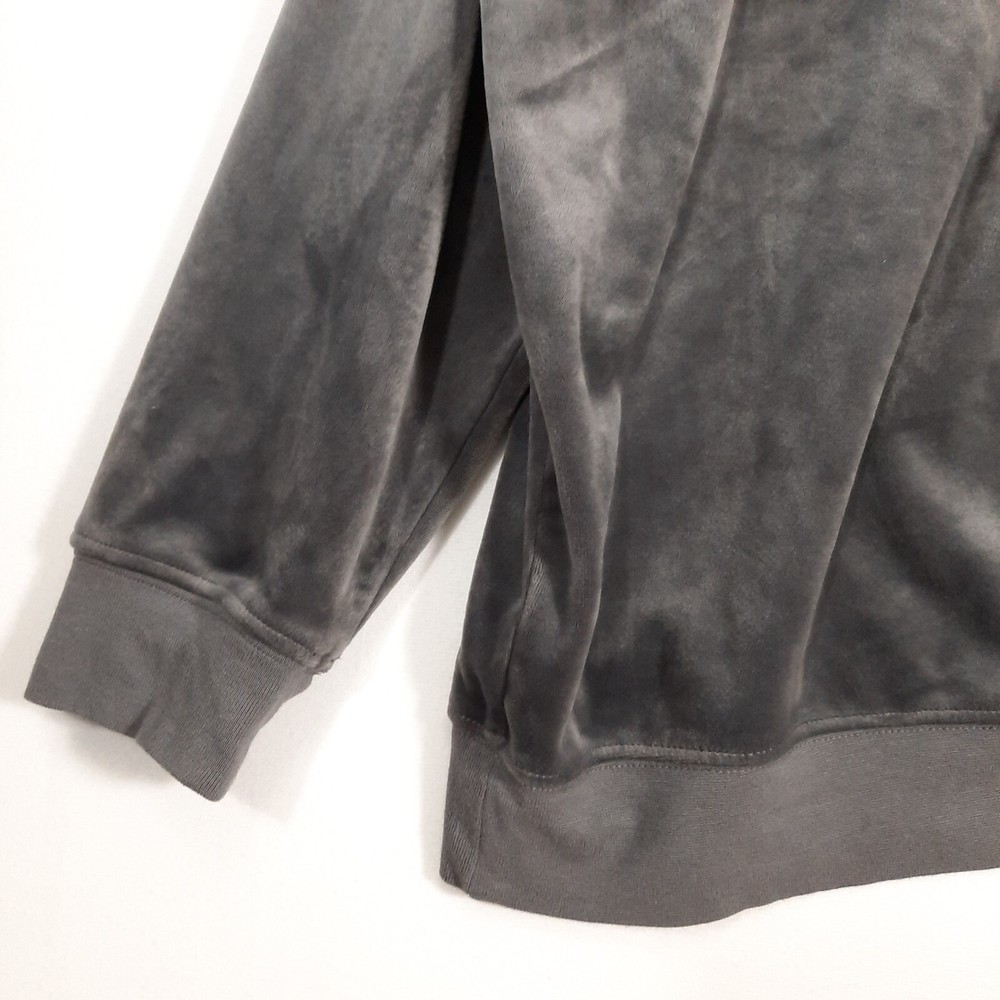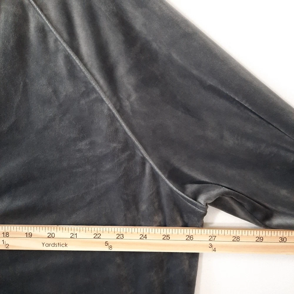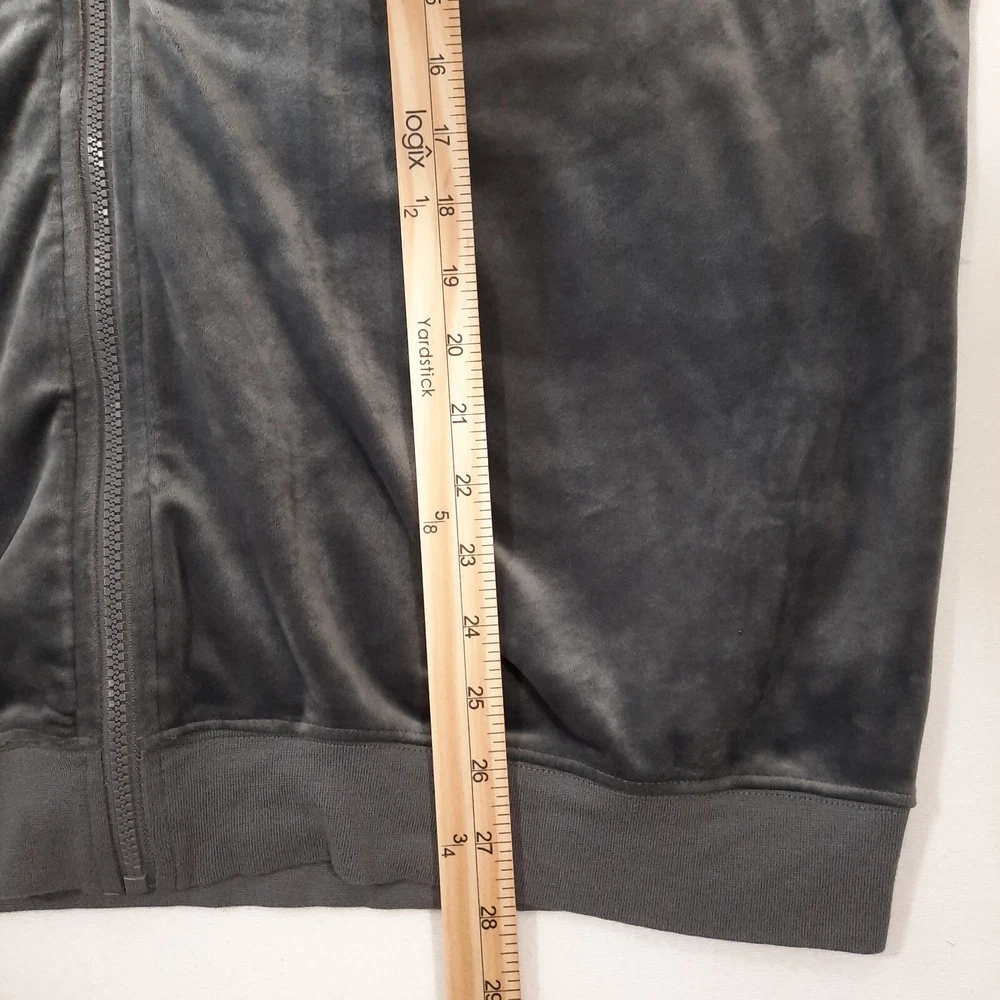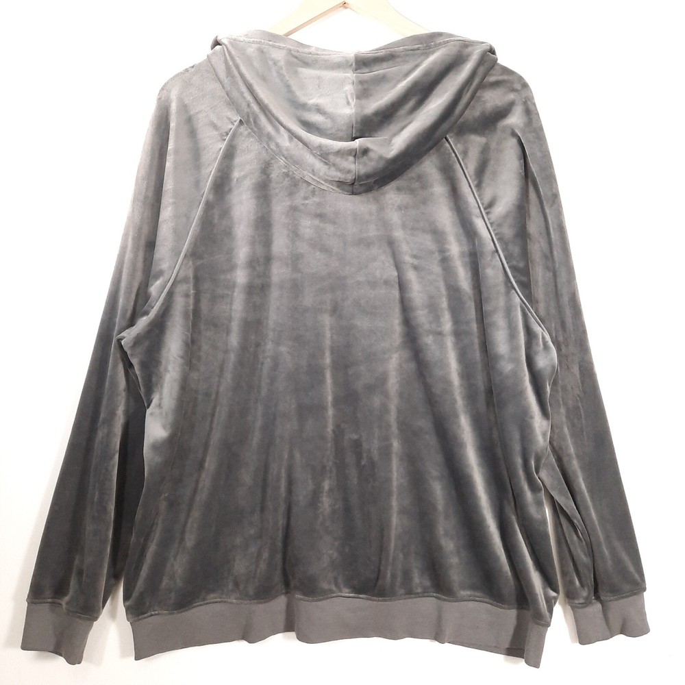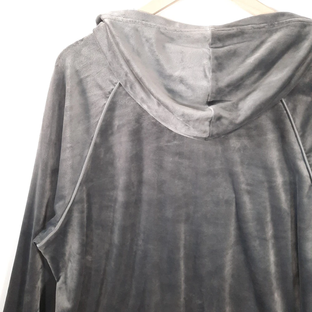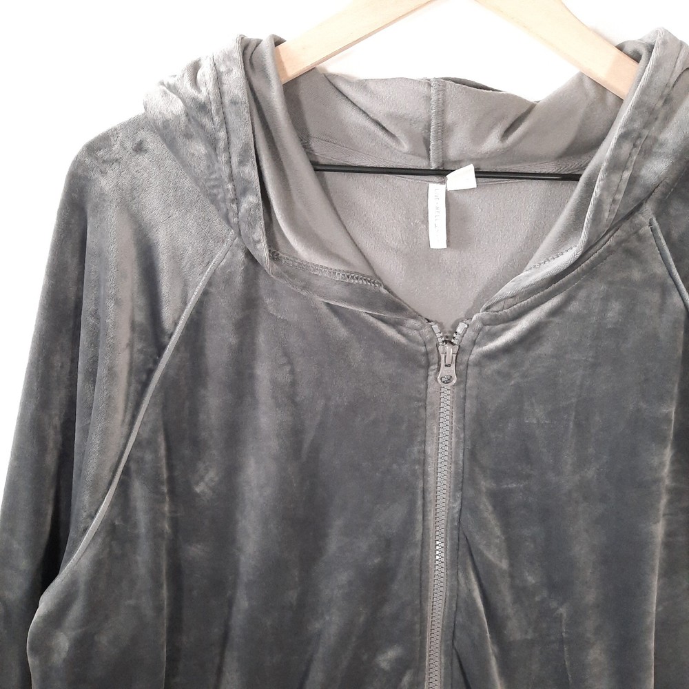 Live Well Lounge Soft Fuzzy Velour Hoodie Metallic Silver / Gray Stretch Fabric Full Zip Front Ribbed Cuffs and Hem Shoulder Piping Excellent Condition Women's Size X-Large Style Tags: athleisure 70s seventies streetwear skater city disco retro slouchy baggy metallic soft cozy comfort