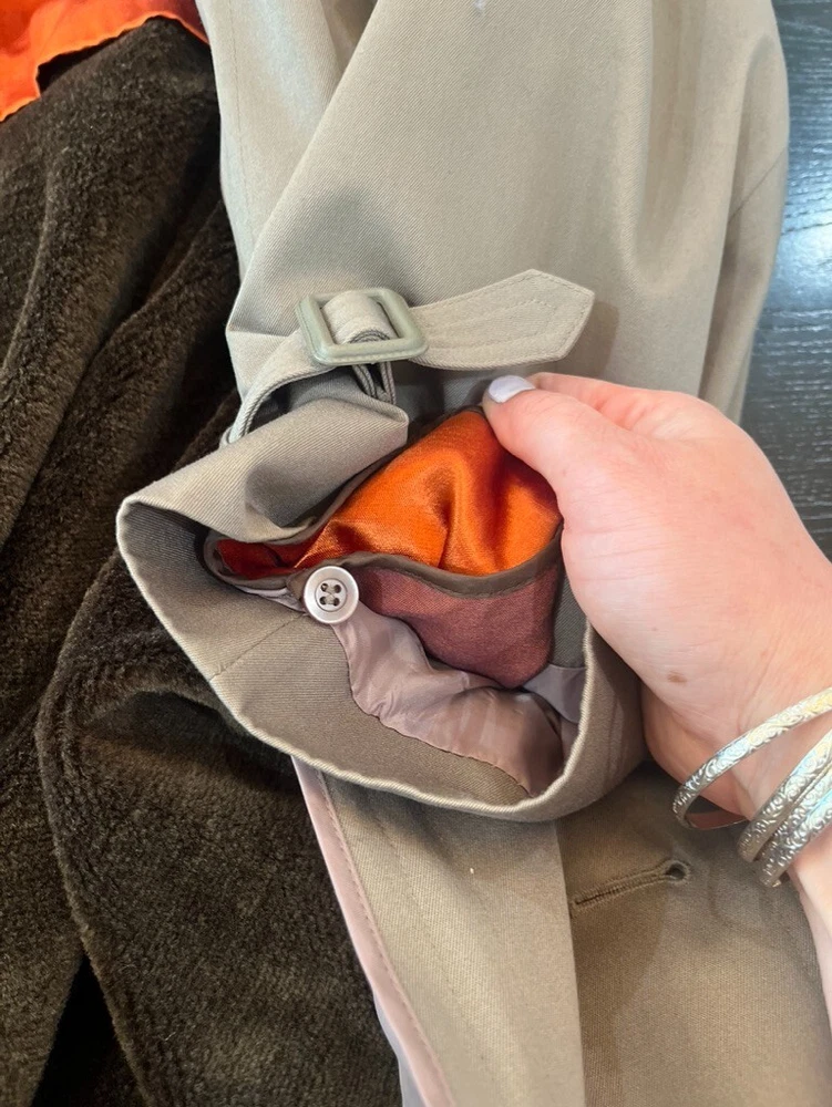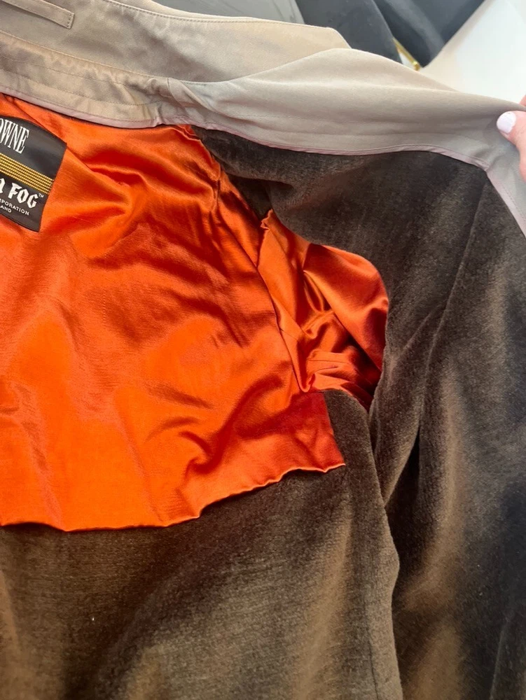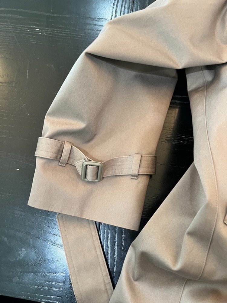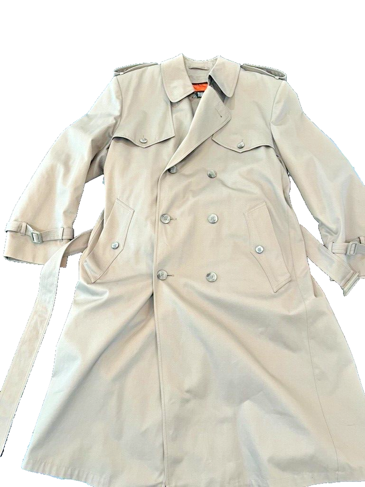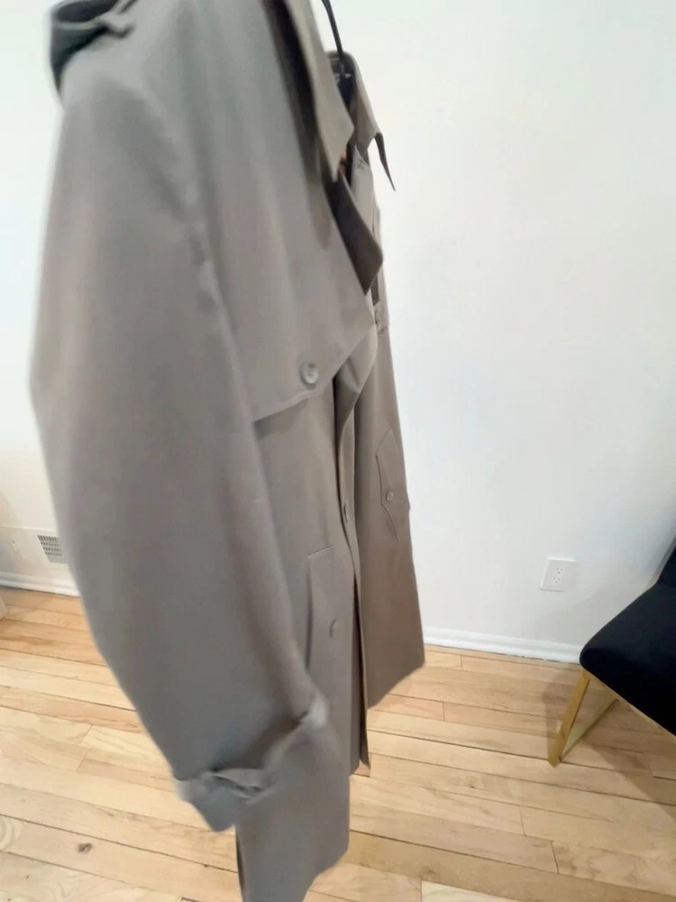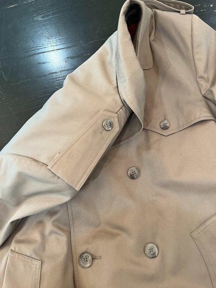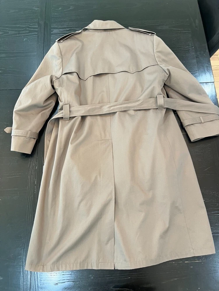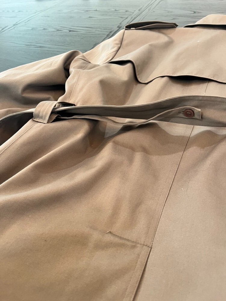This classic London Fog trench coat is a must-have for any stylish man's wardrobe. Made from a durable canvas fabric, this coat features a double-breasted button closure and a belted waist for a timeless look. The beige color and solid pattern make it versatile for any occasion, whether it be for travel, casual wear, or even for the office. The coat also includes various features such as a removable lining, water-resistant and wind-resistant capabilities, and multiple pockets for added convenience. Its vintage style adds a touch of retro flair, making it a perfect addition to any wardrobe. Get ready to turn heads and stay warm this fall and winter season with this London Fog trench coat. Gorgeous condition, has a beautiful removable lining. Lining zippers out with one zipper. Belt can be tied or left to hang, it is buttoned to the back so it wont fall out of the loops and get lost. So many great details on this Jacket. Water resistant. They just don't make the like this anymore. Great vintage character, perfect for everyday wear. Multi-season transitional piece. Measures Pit To Pit 24" Sleeve Length 24.5" Length from shoulder to bottom of hem 46" All clothing/ footwear is worn unless otherwise specified. Please expect a used condition. I notate images or irregularities when it applies. Comes from a smoke free home. Please comment with any questions, if you need additional measurements, or if need clarification on any details. I will be more than happy to help. Check out my other listings! Thank you for shopping with me
