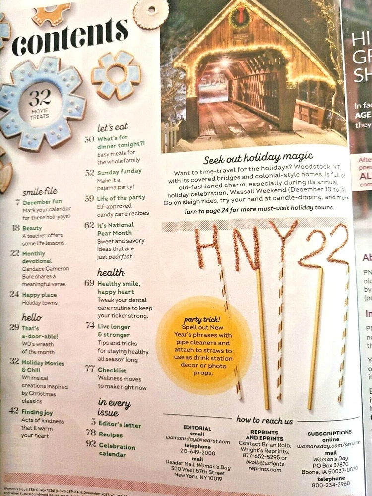 Lot #2 Better Homes & Garden Magazine & Womans Day December 2021 Christmas Santa Cookies & Decorating Both issues have lots of Christmas baking recipes, desserts, holiday movie ideas, and decorating ideas. Two great up to date issues for a great price! Shipping of this item may be delayed due to the USPS and Covid delays. If there is a delay past the expected delivery date, please file a complaint with the USPS. I strive for optimum service. I ship within one business day with USPS. However, I do make mistakes. Please contact me with any problems before you leave negative feedback. If, for any reason you are unhappy with your purchase I will always work with you to resolve the issue. If you feel I do not deserve a five star rating on any category, please let me know so that I may work to correct the problem in the future. I am not a big corporate company, but a small home based company working to survive and thrive. Any comments that will help me to provide optimum service will always be appreciated. Your feedback will be left after I hear from you! Thank you for looking. (SH)