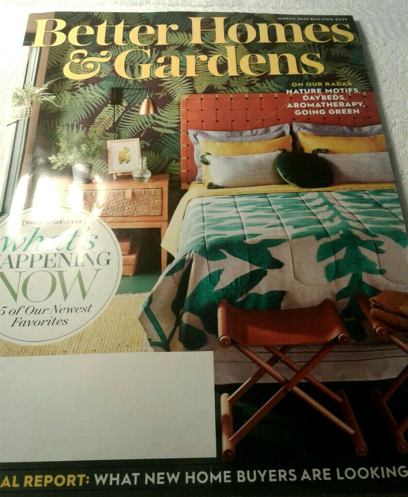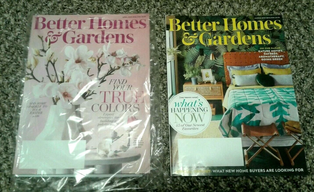 BETTER HOMES & GARDENS Lot of #2 Issues MARCH 2020 ISSUE "Trends Issue" "What's Happening Now 45 of Our Newest Favorites" articles BRAND NEW April 2020 Issue- Find Your TRUE COLORS- Expert Strategies for building a palette you'll love"- "How to Arrange Flowering Branches" I strive for optimum service. I ship within one business day with USPS. However, I do make mistakes. Please contact me with any problems before you leave negative feedback. If, for any reason you are unhappy with your purchase I will always work with you to resolve the issue. If you feel I do not deserve a five star rating on any category, please let me know so that I may work to correct the problem in the future. I am not a big corporate company, but a small home based company working to survive and thrive. Any comments that will help me to provide optimum service will always be appreciated. Your feedback will be left after I hear from you! Thank you for looking. (SH)