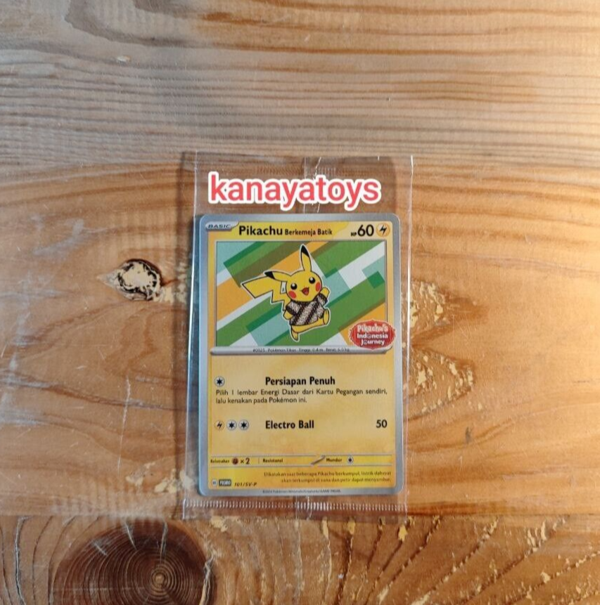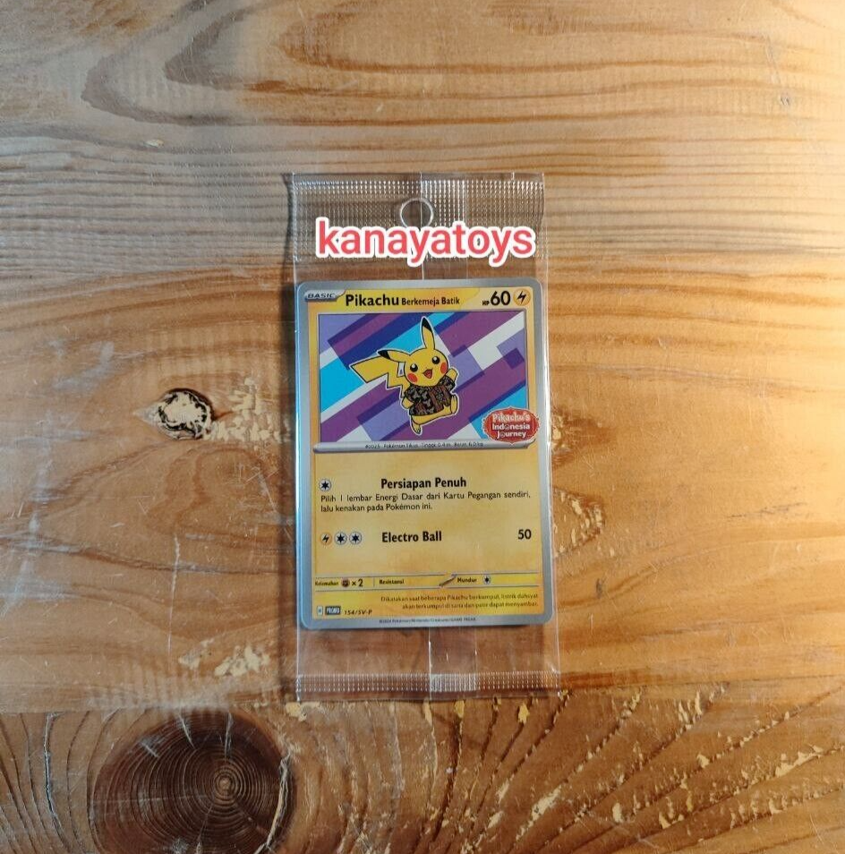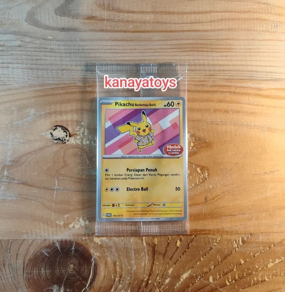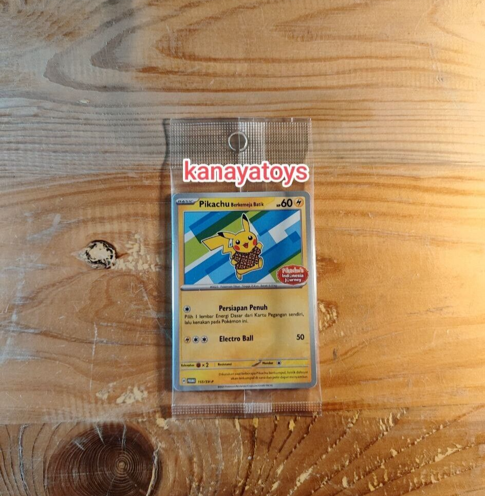 Hello welcome to our shop Product description : This is a 100% Authentic Card Lot 4x Pikachu Batik Complete Set 101 154 155 190 SV-P Pokemon Indonesia TCG The Card is Sealed ** SHIPPING ** • Item will be shipped within 3 working day after receiving the payment. • Item will be shipped using Indonesian Post or Kurasi (exclusive for Indonesian eBay seller) with Tracking Number (20-40 Working Days) • Item will be packed safely to prevent any damage during shipment. • Combine shipping are available (please contact me if you want to purchase 2 or above). • I ship worldwide, but if my shipping is not showing your country destination, please let me know it. I can quote the shipping each country ASAP. ** INTERNATIONAL BUYER ** • Import duties, taxes and charges are the buyer's responsibility. • Please check with your country's customs office to determine what these additional costs will be prior to bidding or buying.