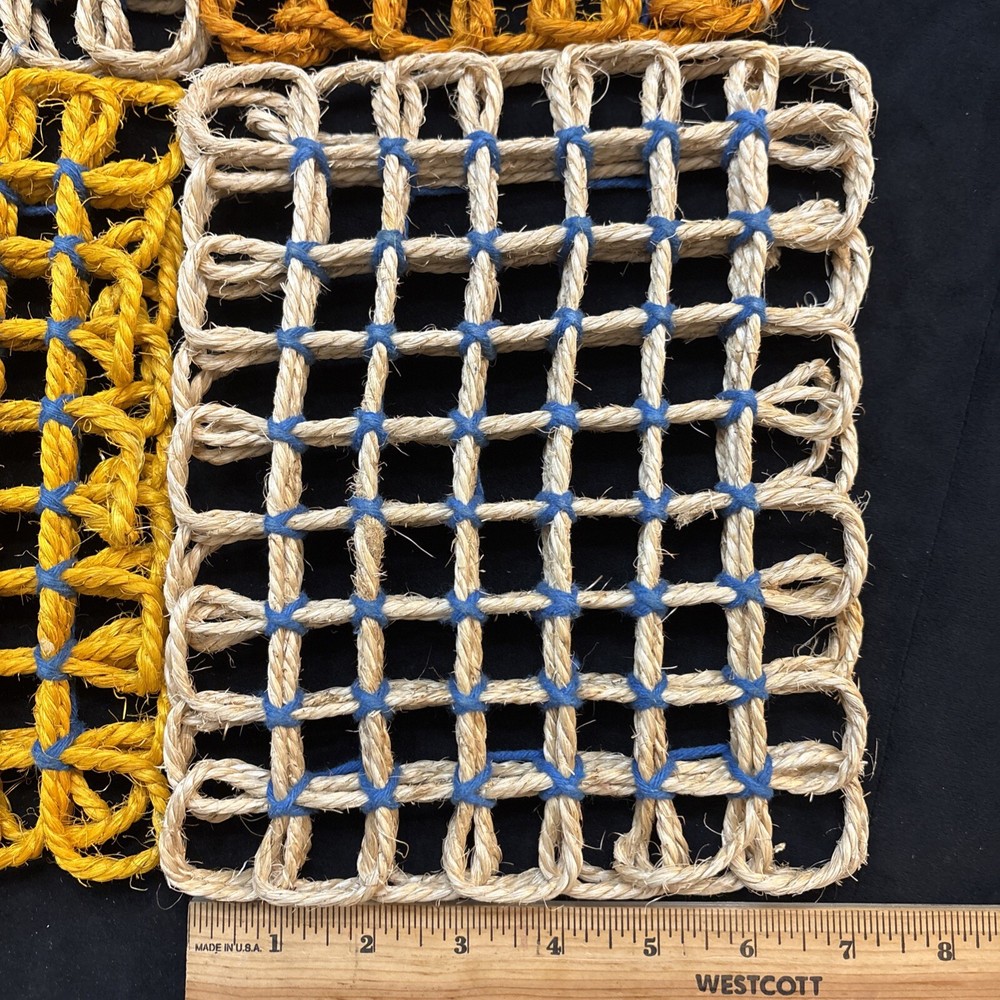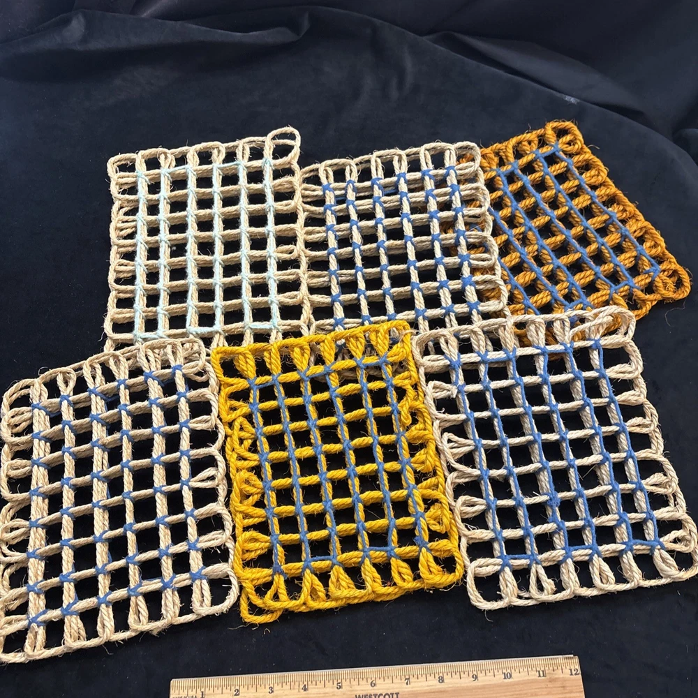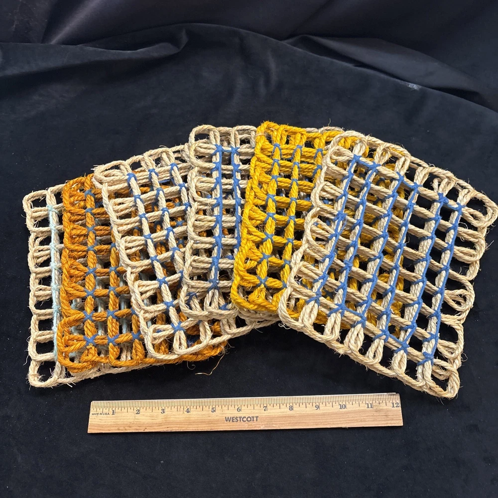 Purchased at Pier one Imports many years ago , 1990’s, these were never used. Went to storage in a ziplock bag and left untouched. Hand woven , sturdy and well crafted measuring 7x9”. Not sure what country as tags removed and no box. New open box or preowned never used. Please see pictures for Condition. Thanks for shopping with us today. We really do appreciate your business. Please contact us if you have any questions or concerns give us the opportunity to help . Many times we can respond faster than Ebay itself. Thank you. 🙂
