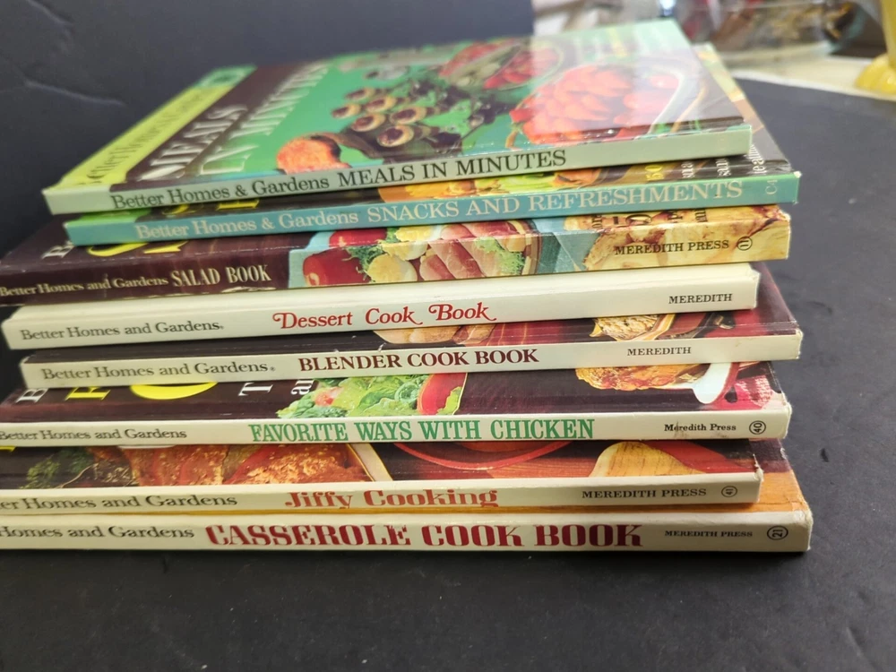 For all the vintage cookbook collectors out there, here's a lot of 8 1960s Better Homes & Gardens Creative Cooking Library cookbooks. These hardcover cookbooks are a must-have for anyone who loves cooking and wants to explore the recipes from the 60s. The books are in great shape and are perfect for both young adults and adults.