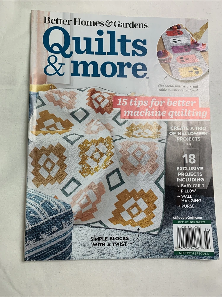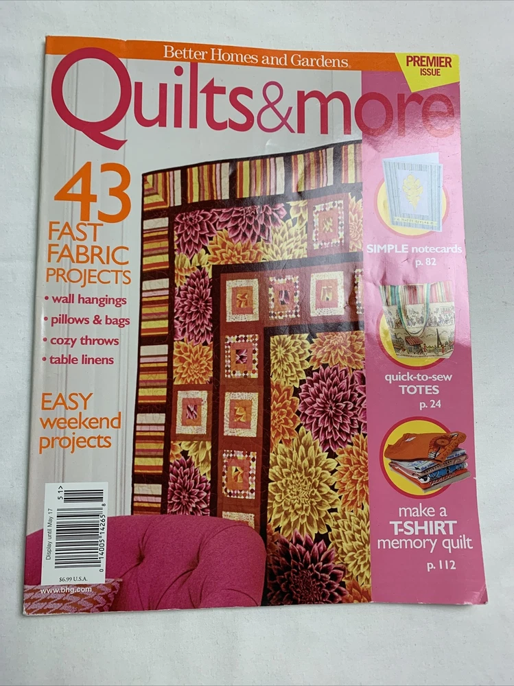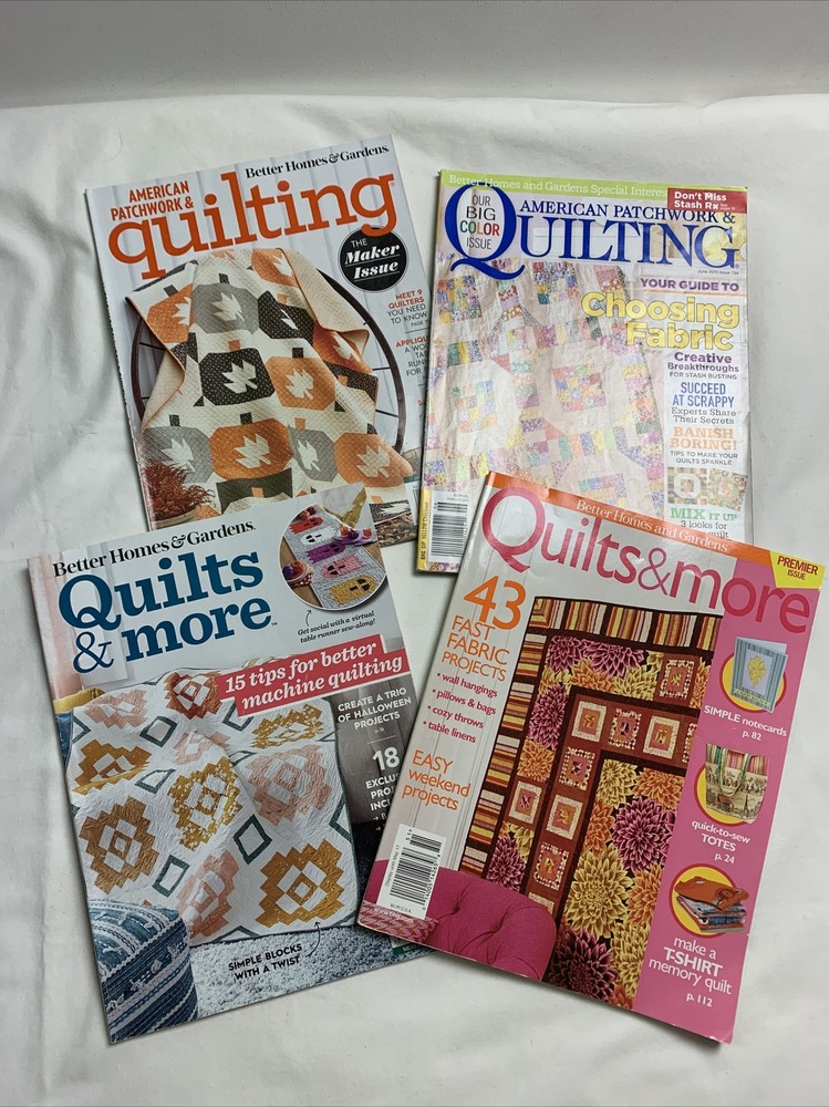 Lot of 4 Better Homes & Gardens magazine including American Patchwork & Quilting Magazine and Quilts & More. Quilts & More: Premier Issue 2005 Fall 2021 -upper right corner tear on front cover page American Patchwork & Quilting : June 2015 October 2020 Preowned and clean with pages intact
