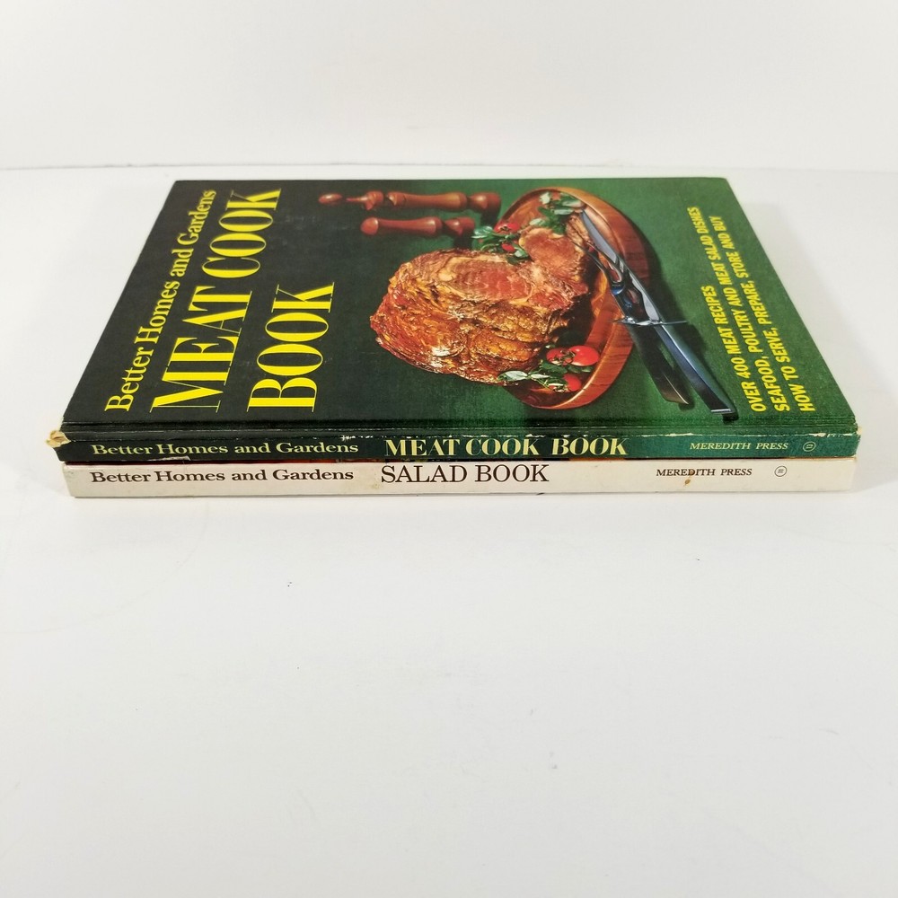 Lot Of 2 Better Homes and Garden Cookbooks Meat Cook Book, over 400 recipes. Salad Book, new salad ideas for every occasion. Both Hardcovers published in 1969. Good condition with light edge wear.