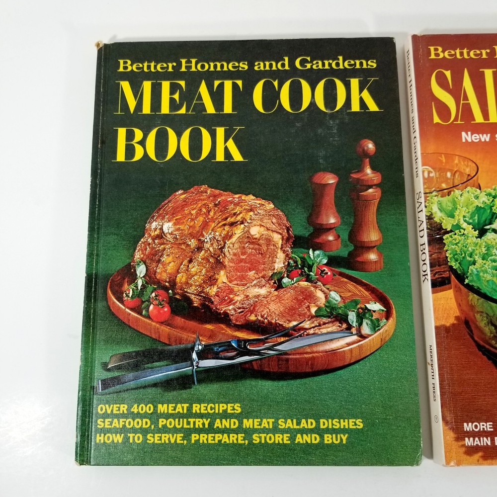 Lot Of 2 Better Homes and Garden Cookbooks Meat Cook Book, over 400 recipes. Salad Book, new salad ideas for every occasion. Both Hardcovers published in 1969. Good condition with light edge wear....