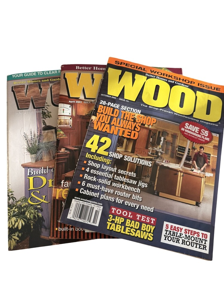This collection includes three issues of Better Homes & Gardens Woodworking Magazine, covering topics like workshop solutions, family room renovation, and building a dresser and mirror. Ideal for woodworking enthusiasts looking to expand their knowledge and skills with expert tips and detailed guides. • Includes 3 magazines: Special Workshop, Family Room Renovation, and Dresser & Mirror • Magazine issues from 2001 and 2003 • Rich in woodworking techniques and solutions Condition: Pre-Owned Good