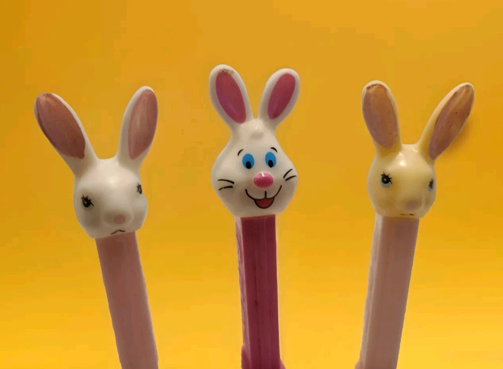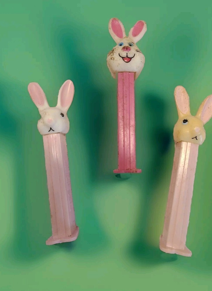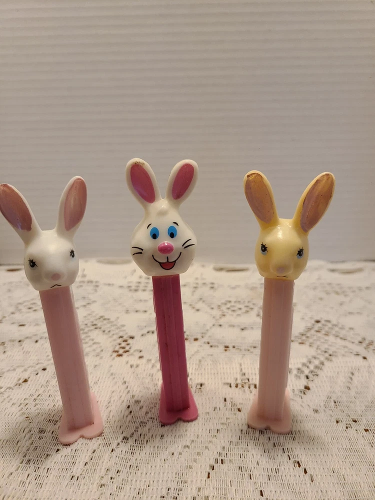 This lot includes three vintage Easter Bunny Pez dispensers and one Hunba Bubba Clucker wind-up chicken. These collectibles are perfect for any holiday or seasonal enthusiast, and were manufactured in Slovenia. Add them to your collection or display them during your next Easter celebration. The Hunba Bubba Clucker is especially charming with its wind-up mechanism and intricate details. Don't miss out on the opportunity to add these unique items to your collection.