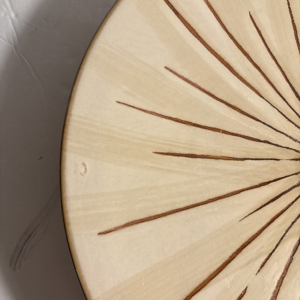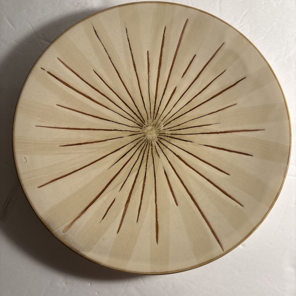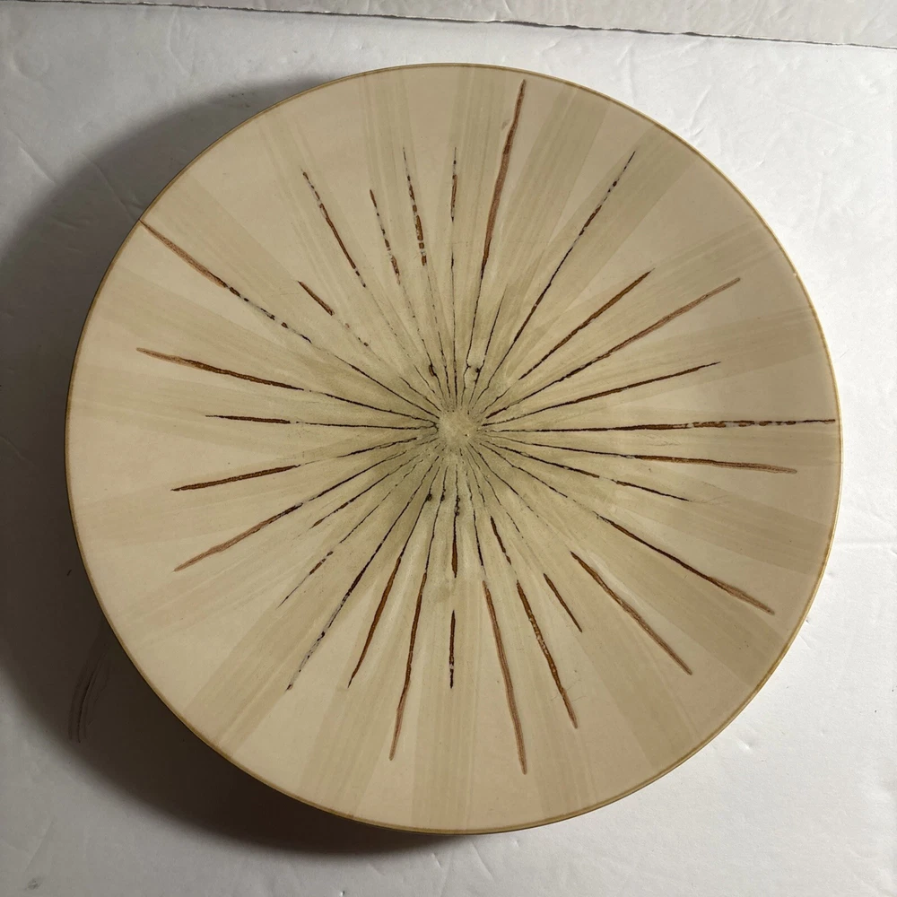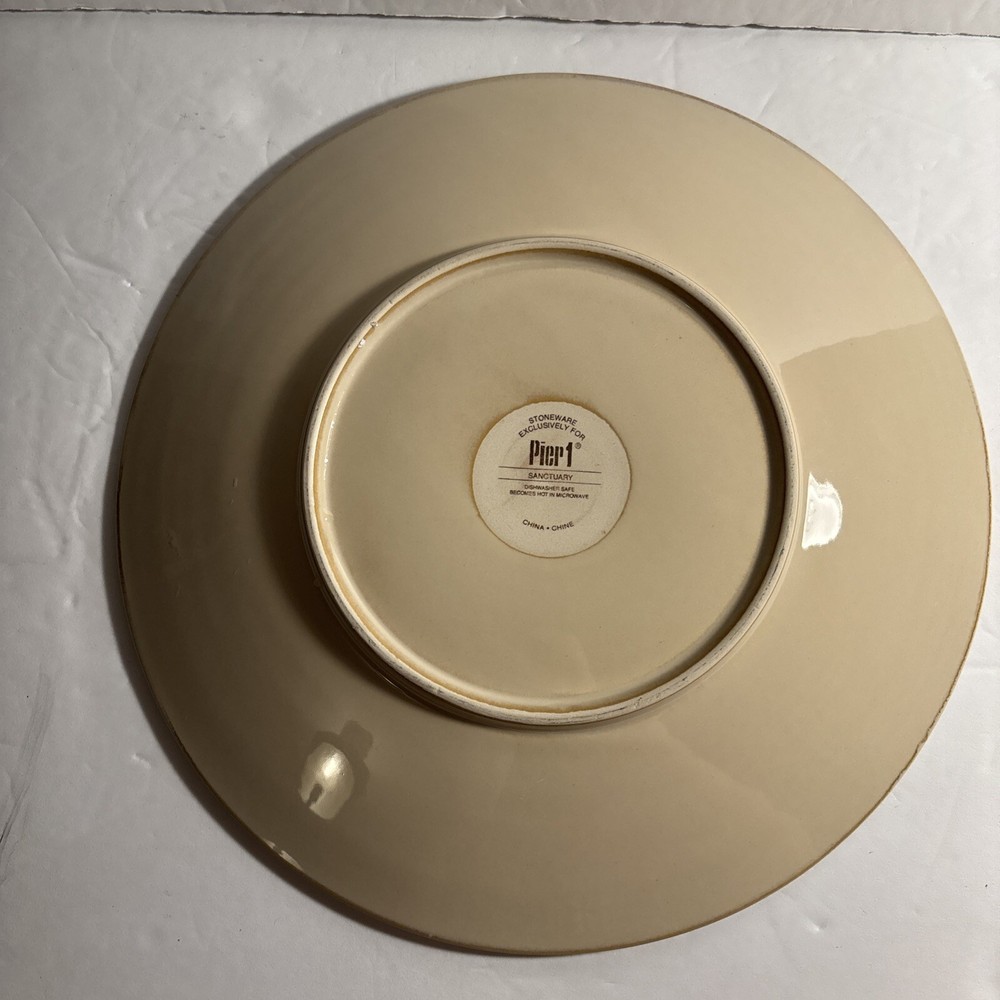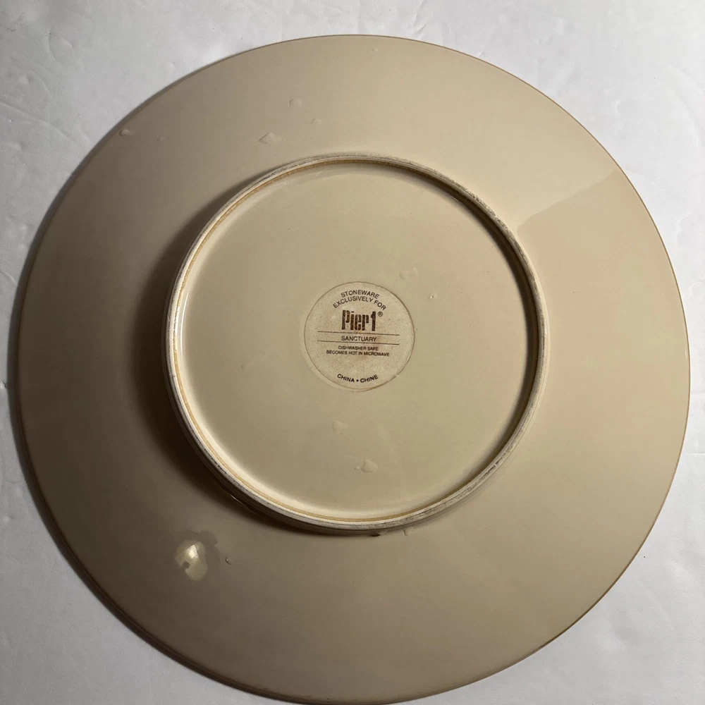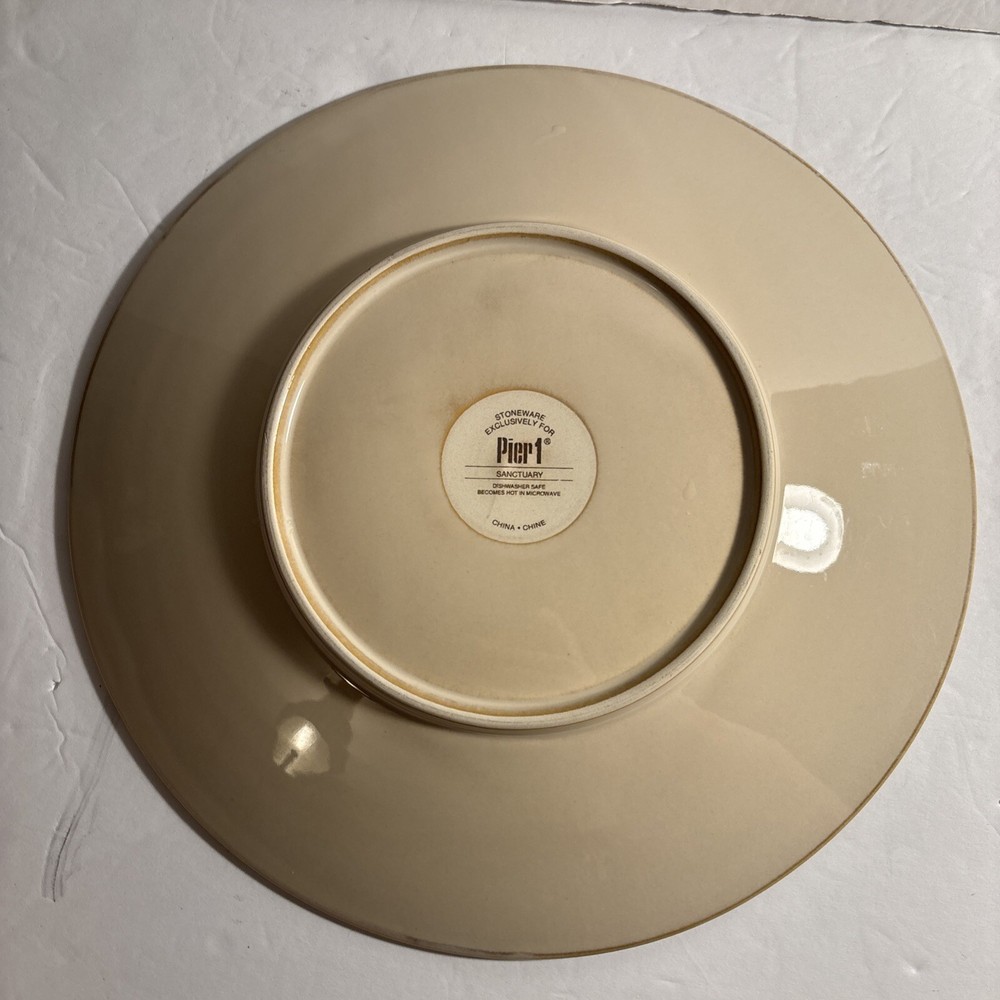 ✨ Item Overview: Enhance your table setting with this lot of 4 Pier 1 Sanctuary Stoneware 11" Dinner Plates. Featuring a striking starburst pattern in cream and brown tones, these plates bring a unique, earthy charm to any dining experience. Their sturdy stoneware construction makes them perfect for everyday use or special occasions. 🍽 Features: Brand: Pier 1 Imports Pattern: Sanctuary Starburst Size: 11" Dinner Plates Material: Durable stoneware Color: Cream with brown starburst design Microwave and dishwasher safe Condition: These plates are in good condition, with minor wear. All plates have been photographed for a clear view of their condition—perfect for everyday use or expanding your collection. Please note that since there are multiples, there may be some slight variations from the photos. Some may have a darker stoneware material, some may have a lighter or darker design. 📸 What's Included: 4x Pier 1 Sanctuary Starburst 11" Dinner Plates 🛒 Why Buy From Us? We provide honest descriptions and detailed photos, so you know exactly what you're getting. Our fast shipping and attentive customer service ensure a smooth buying experience. Whether you're adding to your Pier 1 collection or looking for unique dinnerware, these plates are a great choice from a trusted seller. 🎗 Notes to the Buyer: These plates are perfect for anyone looking to complete their Pier 1 Sanctuary set or add a distinctive touch to their table. While they show some signs of wear, they remain functional and stylish. Please refer to the photos for a full understanding of their condition. 🔑 Keywords: #Pier1Sanctuary #StonewareDinnerPlates #StarburstPattern #CreamAndBrownPlates #VintageTableware #Pier1Imports #11InchDinnerPlates #MicrowaveSafePlates #DishwasherSafePlates #UniqueDinnerware
