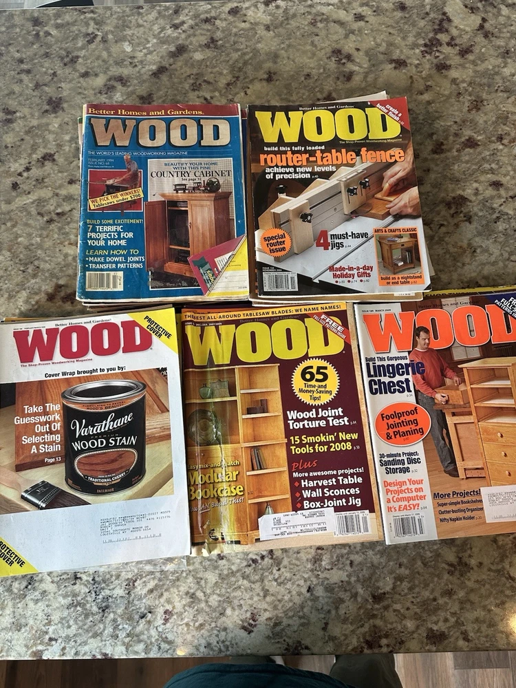 Up for your consideration is a lot of 46 vintage Better Homes and Gardens Wood Magazines. Please look at all the pics to what is in the lot. Most magazines are in good condition just a few are little rough but overall in great condition. One is still new in the package. All come from a smoke free home.