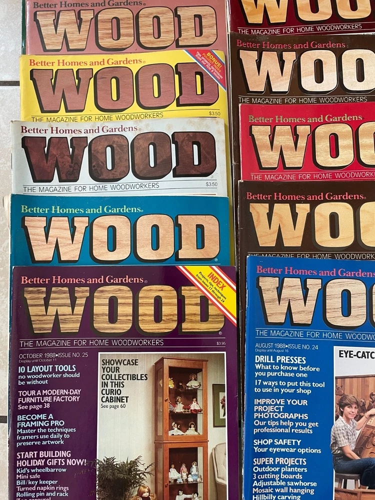 Lot Of 47 Woodworking Magazines Wood Hands On 84 - 89 Patterns These are all preowned magazines. Some are in great shape others have scuffs, tears or scratches. Years for these magazines are 1984 - 1989. I will be adding a few freebie wood books to this lot. Please email me any questions you may have.