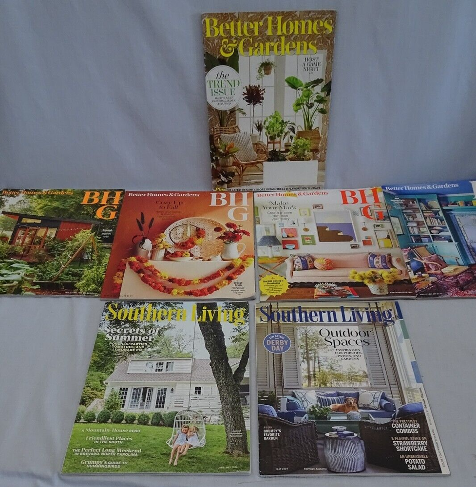 Lot Of Seven (7) Magazines Includes: Better Homes And Gardens - March 2019 - The Trend Issue BHG - 2023 - July/August - Summer To The Max BHG - 2023 - October - Cozy Up To Fall BHG - 2024 - May - Mark Your Mark BHG - 2024 - June - The Art of Color Southern Living 2024 - May - Outdoor Spaces Southern Living 2024 - June/July - Secrets of Summer Excellent - most look new/unread - clean - smoke-free environment Questions Invited - offered as a group only No pick up arrangements available