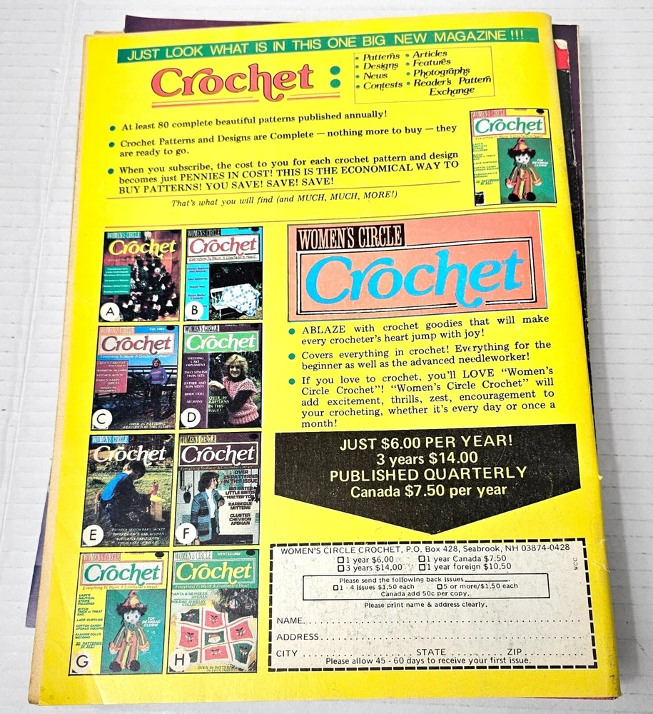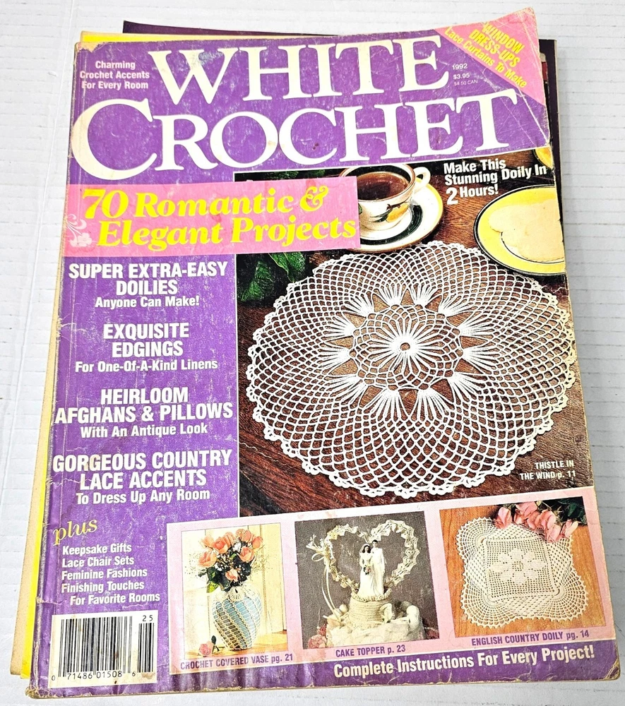 Dive into a delightful collection of vintage crochet magazines. Discover numerous patterns, techniques, and creative projects for all skill levels. Normal wear and tear on vintage magazines but overall in good condition. • Includes 7 magazines • Featuring multiple crochet patterns • Diverse project ideas for all ages