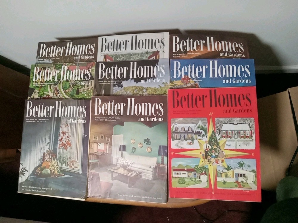This product is a lot of 9 Better Homes and Gardens magazines from the years 1949. Each magazine features various articles, illustrations, and advice related to home and garden topics. These monthly publications, originating from the United States, provide insights and inspiration for readers interested in decorating, gardening, and improving their living spaces. The magazines cover a range of months including January, February, March, April, May, June, July, August, September, October, November, and December, offering a comprehensive look at seasonal and timeless home and garden ideas.