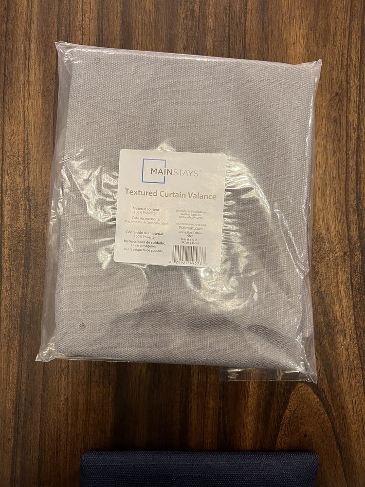 Lot Set Of Mainstays Rod Pocket Semi-Sheer Polyester Valances, Gray, Navy Blue, Red, Aqua 1.0" X 17"....