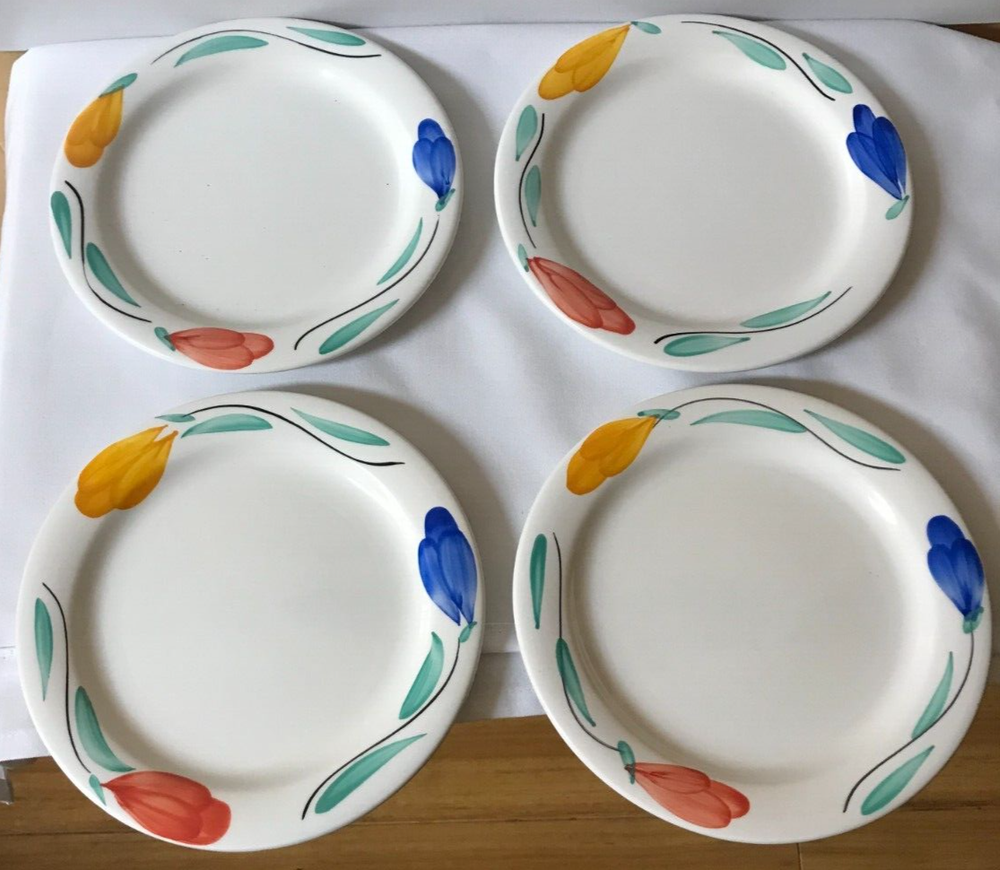 Set of 4 PIER 1 IMPORTS 8" SALAD PLATES White with Tulips Flowers Made In Italy Good Condition....no chips or breaks