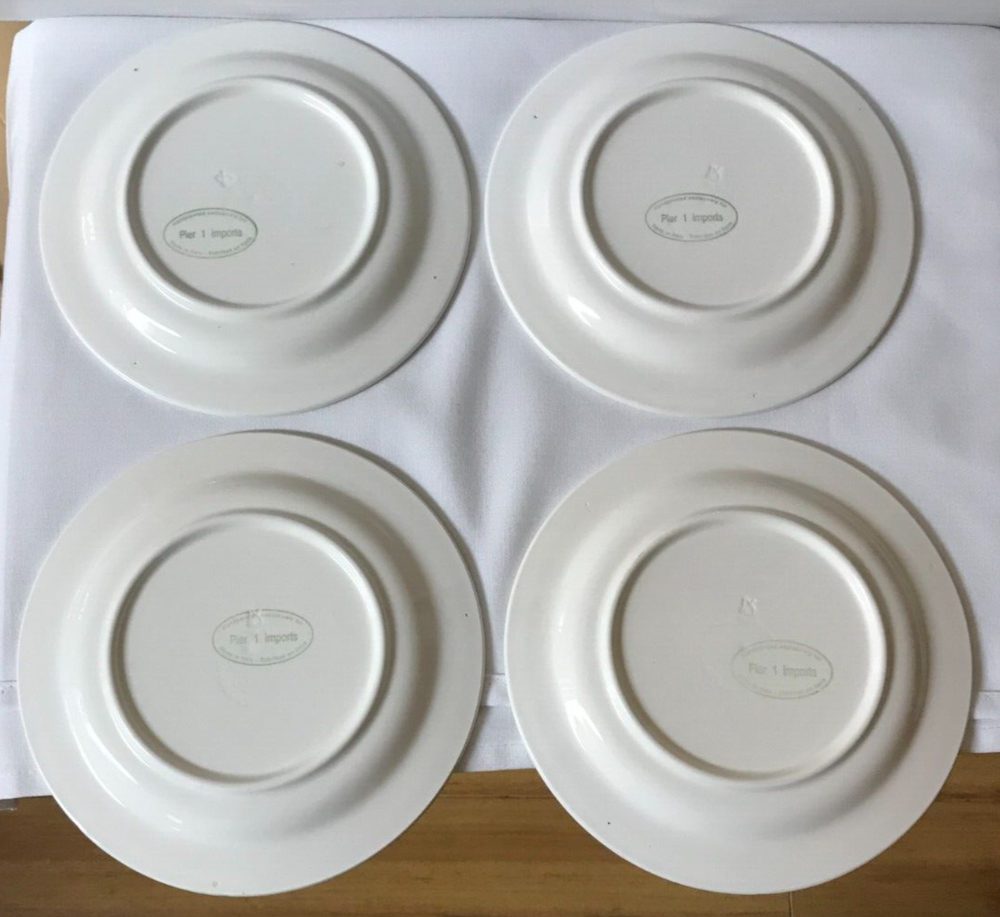 Set of 4 PIER 1 IMPORTS 8" SALAD PLATES White with Tulips Flowers Made In Italy Good Condition....no chips or breaks...