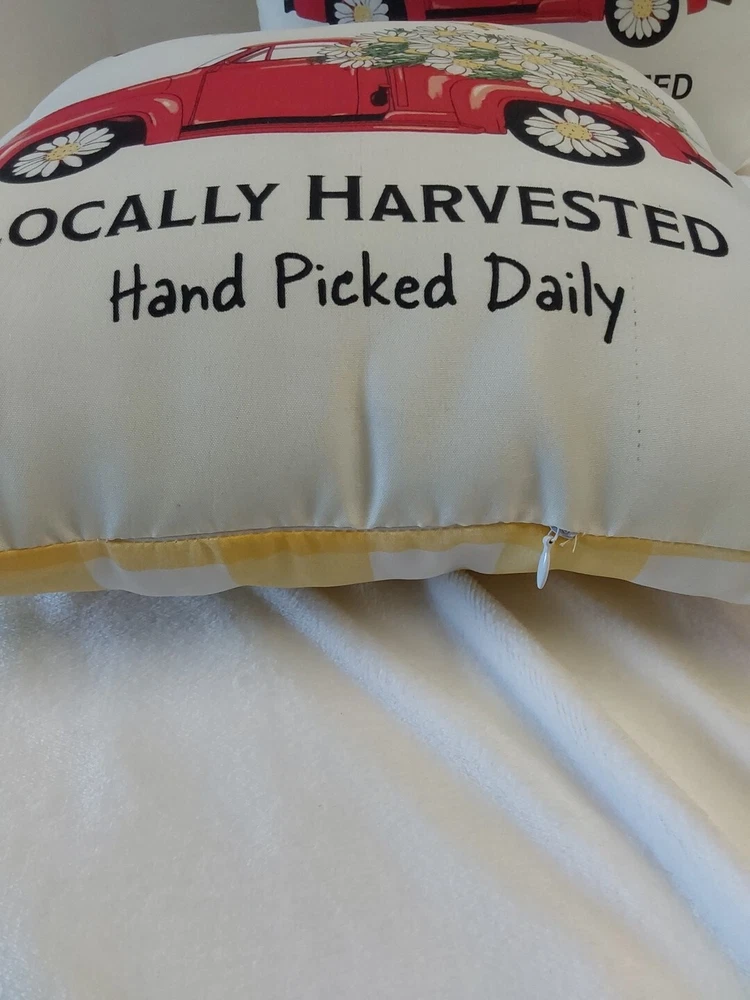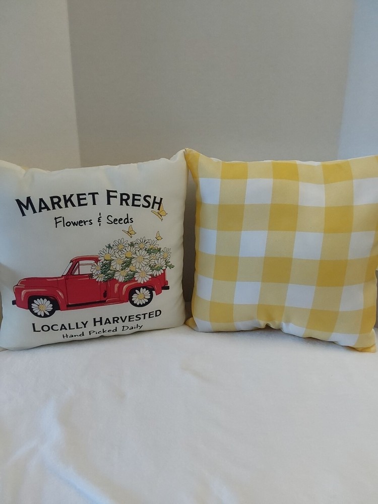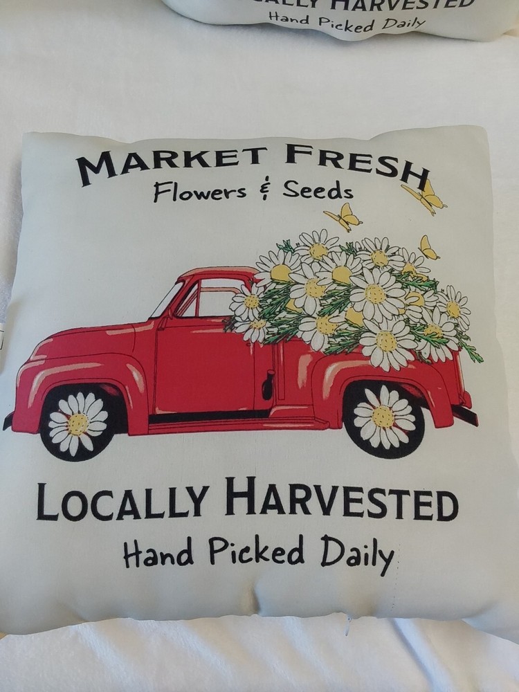 Add a touch of elegance to your home décor with this set of two Mainstays throw pillows. These square pillows measure 16 x 16 inches and come in a beautiful white and yellow color scheme with a red truck and lovely flower theme. Made of high-quality polyester material, these throw pillows are perfect for both indoor and outdoor use. The zip closure type ensures easy removal for cleaning or storage. Bring these stylish pillows into your home today and add a pop of color and comfort to any room! Feel free to ask questions. Thanks for looking! Please check out my other listings and follow me for new items listed daily.