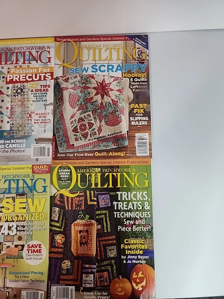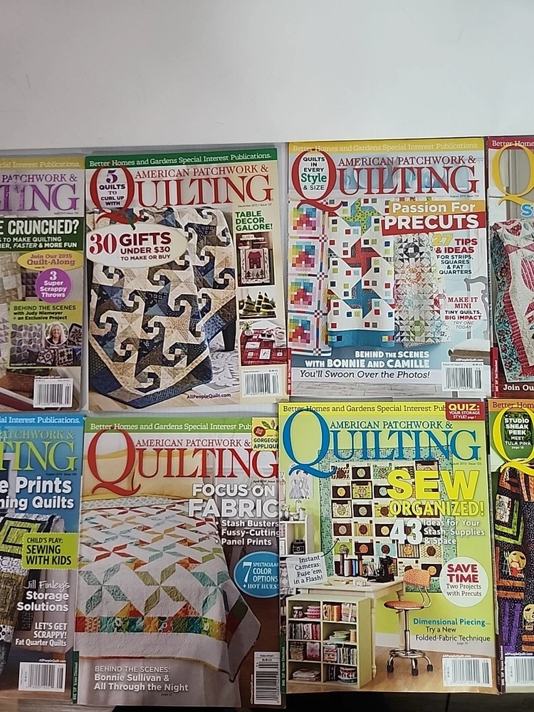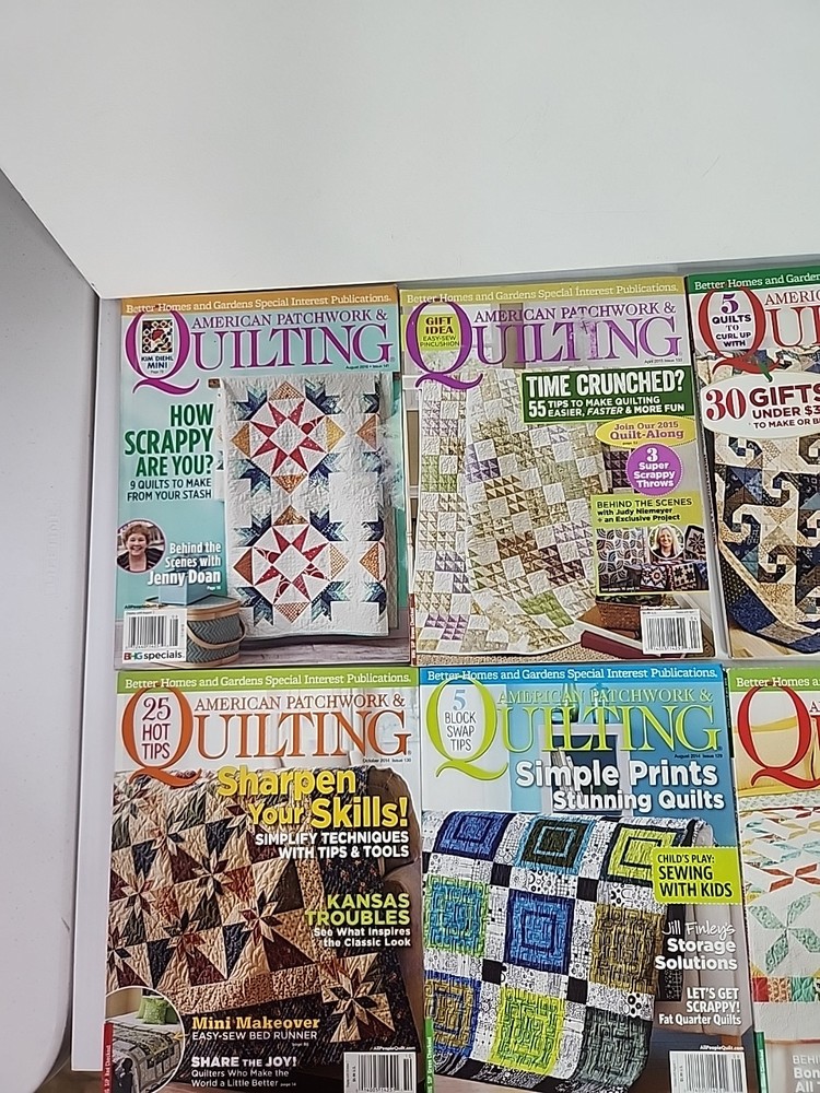 The product is a lot of 10 American Patchwork Quilting magazines published by Better Homes & Gardens. The magazines fall under the Home & Garden genre and are likely focused on quilting and sewing pro...