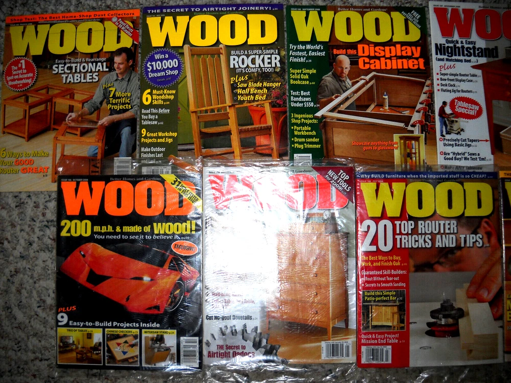 Lot of 11 WOOD Better Homes & Gardens Magazines 2007-2009. Five are still sealed and some of the address labels have been peeled off.
