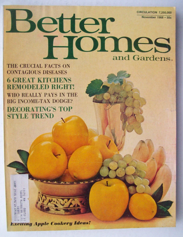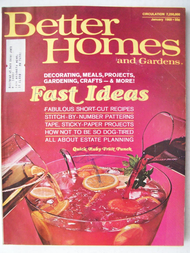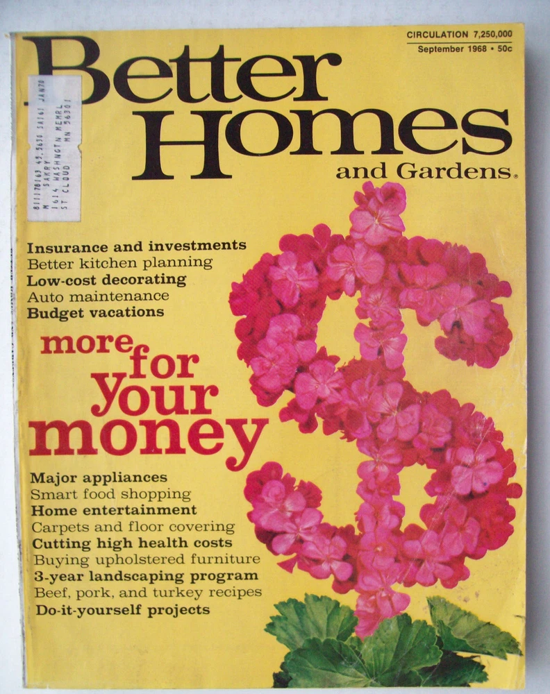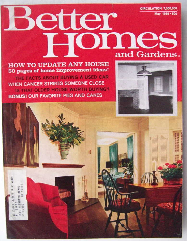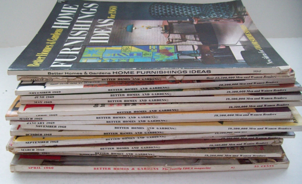 Lot of 16 Better Homes and Gardens magazines, includes Home Furnishings Ideas for the '60s issue minor discoloration and spots consistent with age mailing labels some coupons removed and 1 recipe cut out, no other cutouts or removed pages slight old paper smell 1960 - 1 issue 1936 - 1 issue - binding split in 2 1968 - 6 issues 1969 - 6 issues 1970 - 1 issue Home Furnishings ideas for 1960