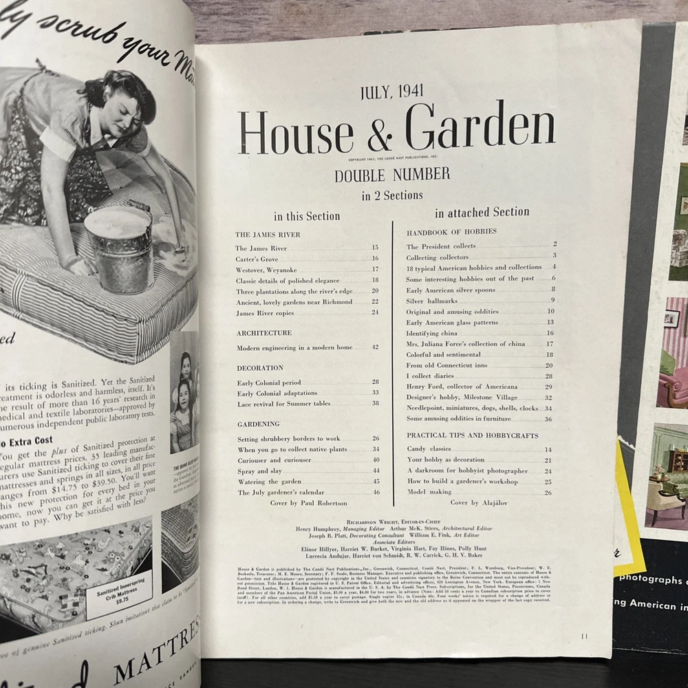 This lot includes two issues of Better Homes & Gardens magazine from 1941, featuring retro advertising and vintage gardening ideas. The magazines are filled with tips for better gardening, modeling and remodeling homes, family activities, and food and cooking ideas. These magazines are perfect for anyone interested in home and gardening, and those who appreciate the beauty of vintage advertising.