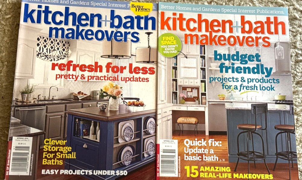 Lot of 2 Better Homes & Gardens magazines Kitchen and Bath Makeovers Spring 2014 Spring 2015 Both are brand new and I will combine shipping with my other items Thanks