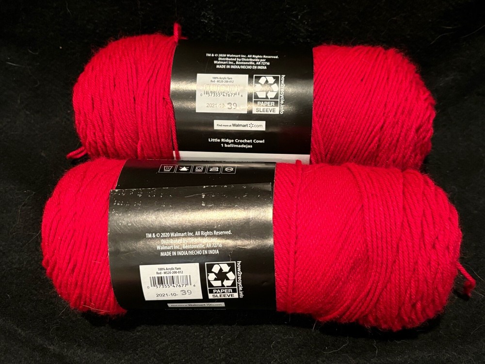 Lot of 2 ~ Mainstays Acrylic Yarn, Red. Condition is New. Shipped with USPS Ground Advantage.