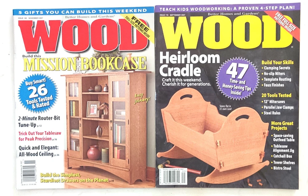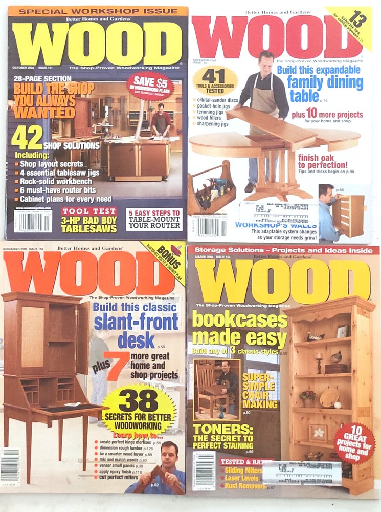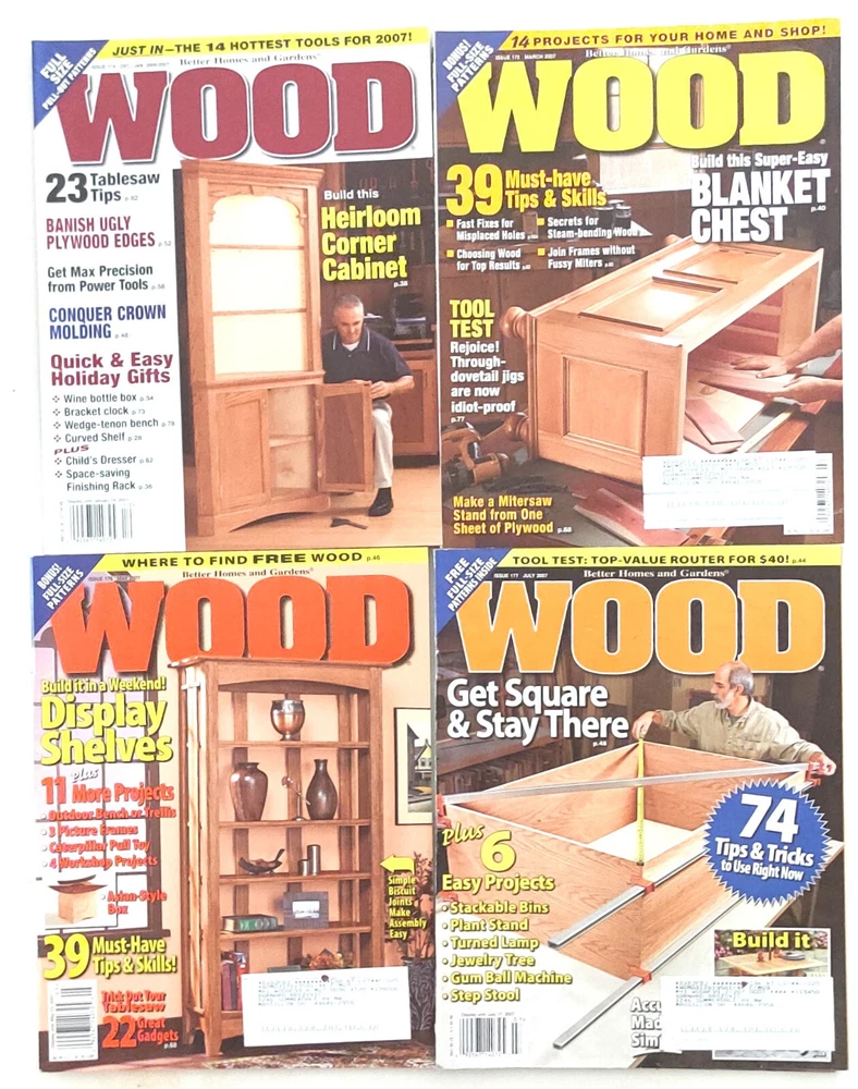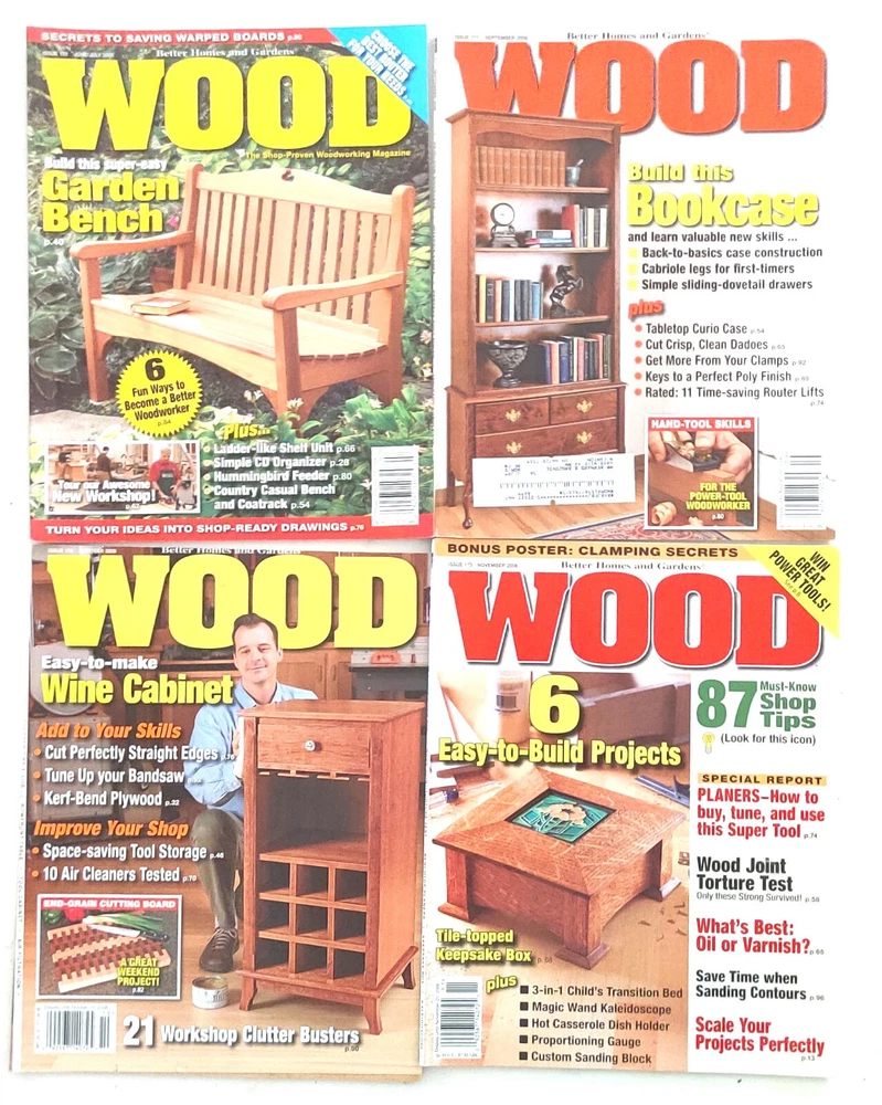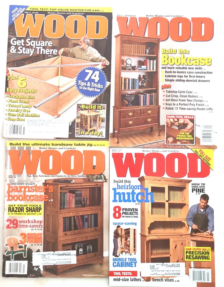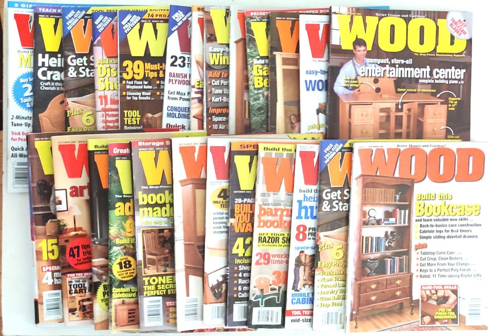 Lot of 26 Better Homes and Garden Wood Magazines March 2003 - Issue 147 June/July 2003 - Issue 149 October 2003 - Issue 151 November 2003 - Issue 152 December 2003 - Issue 153 March 2004 - Issue 154 May 2004 - Issue 155 June/July 2004 - Issue 156 October 2004 - Issue 158 December/January 2004/2005 - Issue 160 June/July 2005 - Issue 163 October 2005 - Issue 165 November 2005 - Issue 166 December/January 2005/2006 - Issue 167 June/July 2006 - Issue 170 September 2006 - Issue 171 (2 copies) October 2006 - Issue 172 November 2006 - Issue 173 December/January 2006/2007 - Issue 174 March 2007 - Issue 175 May 2007 - Issue 176 July 2007 - Issue 177 (2 copies) September 2007 - Issue 178 November 2007 - Issue 179 Several shipping options provided