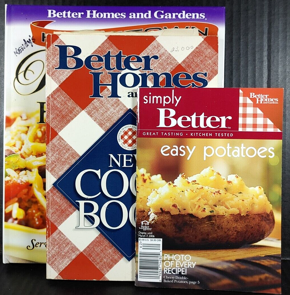 Up For Sale: Lot of 3 Better Homes and Gardens Cookbooks--Potluck Favorites--New Cookbook 11th Edition--Easy Potatoes Cover: EX Pages: Crisp & White for the most part Notes: Payment is expected within 3 days of end of sale. I do Combine Shipping for multiple Items paid for Together--message for a quote. Shipping for this item is $9.20 in USA....Ebay International shipping for everywhere else. International customers please note ** Shipping as noted in this listing is for me shipping the item to ebay International shipping. They will send you an invoice for the actual shipping & fees after the sale. Any items (U.S. Shipping) with final price exceeding $30.00 will be insured by me for both of our protection. NO RETURNS on international sales ! Questions or Problems ??? PLEASE E-mail me--Your Satisfaction is More Important to me Than Your Money. Check out my other items ! Be sure to add me to your favorites list !