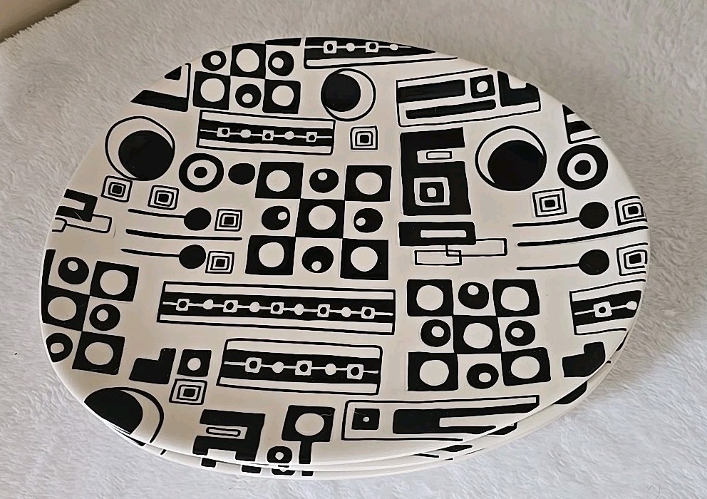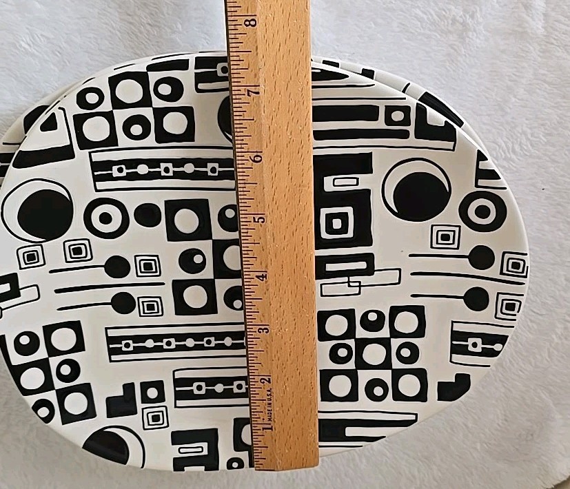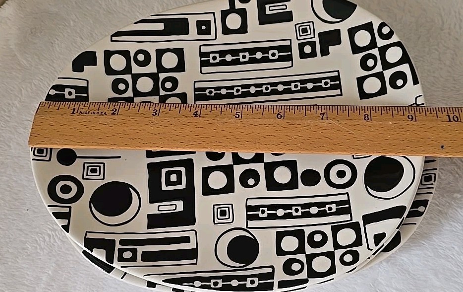 Love these awesome plates, classic black and white, oval instead of round. Very cool design Excellent gently used condition.