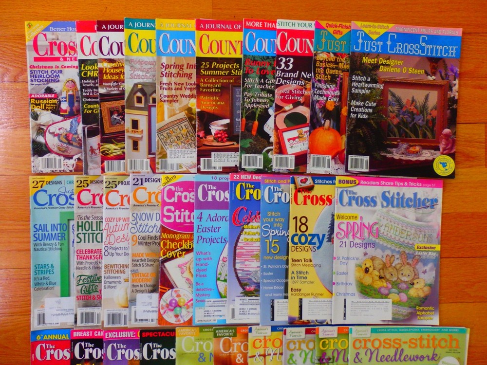 Offered for sale is a lot of 40 Cross stitch magazines. There are 15 Cross-Stitch & Needlework (2008-2016), 10 The Cross Stitcher (2001-2010), 6 Just Cross Stitch (2 1993 + 4 2021-2023), 7 Country Stitch (1990, incl. the premier issue) and 2 Better Homes & Gardens Cross Stitch & Needlework (August 1998 + Christmas 1990). Most are in excellent condition. Immediate payment is required. International shipping is not offered, du to the weight. Listing and template services provided by inkFrog