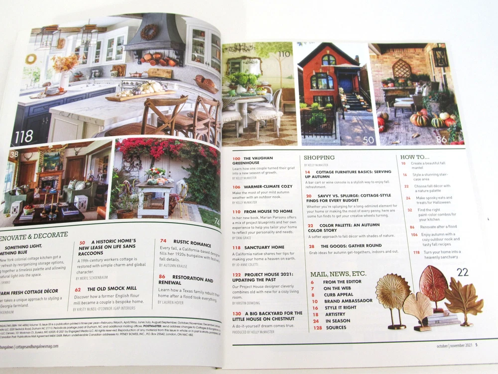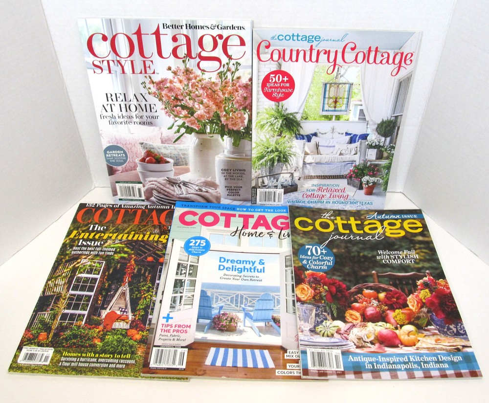 Lot of 5 Cottage Magazines They are all in Excellent Condition Country Cottage , The Cottage Journal, May 2021 The Cottage Journal , Autumn Issue, 2021 Cottage Home & Living , Aug, 2021 Cottages and Bungalows , Nov 2021 Cottage Style , Better Homes, June 2021