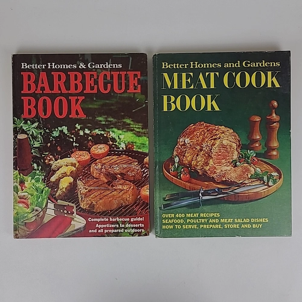 This lot includes 7 vintage cookbooks by Better Homes & Gardens, featuring a variety of recipes for baking, BBQ, slow cooker dishes, and cakes. The hardcover books are illustrated and bundled together, offering a nostalgic glimpse into the world of cooking from past decades. Published by Meredith Books in the United States, these cookbooks provide a collection of classic recipes and techniques for anyone interested in exploring traditional American cuisine.