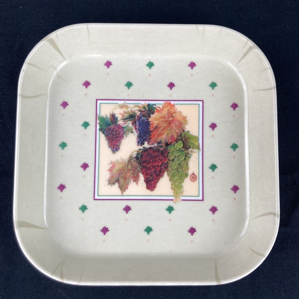Lot of 7 Design Imports Melamine Trinket Dish Tray 5” Grapes Made In Italy. CONDITION: Very good pre owned condition. Made of melamine plastic. Complete set of 7 mini dish trays, may have mild masking tape residue on bottom sides. (Trays don’t have cracks down the sides, this is part of the design art.) PAYMENT: all major Credit Cards or online payment systems. (Paypal, apple pay, google pay) SHIPPING: USPS Priority Mail. FREE domestic USA. We ship all items within 1 business day of your payment clearing (excludes weekend and holidays) We also offer global shipping through Ebays global program please inquire with eBay. FEEDBACK: We strive to earn positive 5 star feedback for all items. And we will leave the same for all good buyers. If you feel we deserve anything less please send us a message before leaving anything less or opening a case and we will fix the issue within 24 hours. Thank you!!! RETURNS: If for any reason you are unhappy with the item you received we accept returns through ebays 30 day return policy. The buyer pays return shipping costs. If item is brand new Sealed it must remain sealed for return or no credit will be given