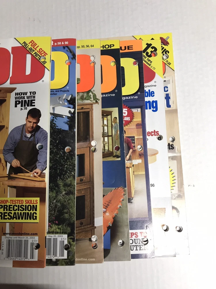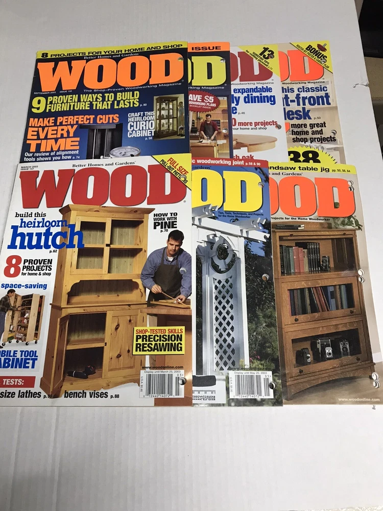 Lot of *7* WOOD MAGAZINE Better Homes & Gardens 2003 Woodworking Tips Issues included: Date Issue Mar-03 147 May-03 148 June/July 2003 149 Sep-03 150 Oct-03 151 Nov-03 152 Dec-03 153...