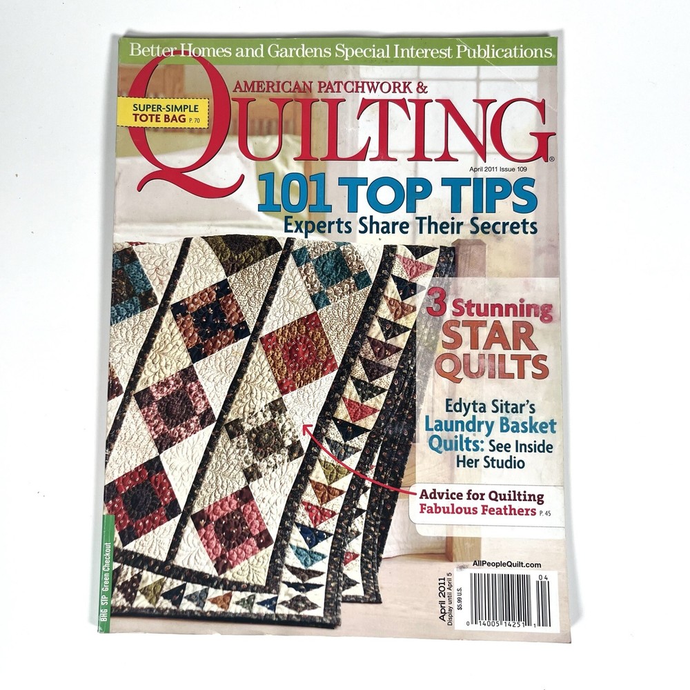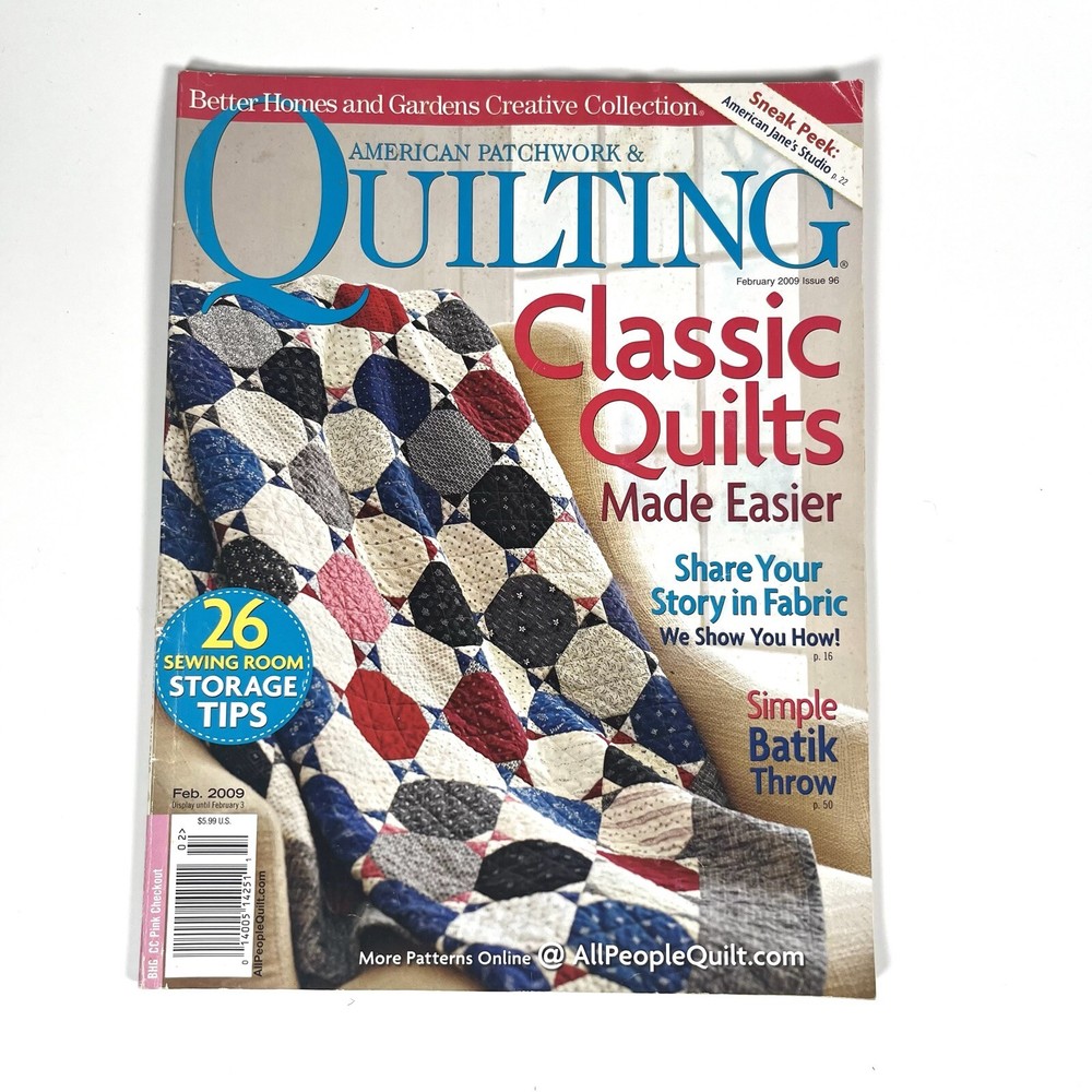 White Squirrel Books Stuff you'll go nuts for! Lot of 8 American Patchwork & Quilting Magazines 1990s and 2000s This is a lot of 8 American Patchwork & Quilting Magazines by Better Homes and Gardens. Pages are unmarked and patterns are uncut. One issue - Feb 2009 #96, has wrinkling along the tops of the pages, due to water exposure, but no mold/mildew/smell present. Edge wear and scuffing to cover. Issues include: #11 December 1994 #15 August 1995 #16 October 1995 #17 December 1995 #96 February 2009 #109 April 2011 #139 April 2016 #158 June 2019 All items stored in a smoke-free and moisture & temperature-controlled environment. Professionally shipped within one business day in a box. Visit our store! White Squirrel Books Categories AudioBooks Blank Media Books Christmas in August?! Christmas Music/Movies/Books.. Clothing Collectable Aircraft Collectables Comics Electronics Exercise Audio/Video Games & Puzzles Halloween Time! Health & Beauty Instructional Audio/Video Kitchen Appliances LEGO Magazines Maps Movies/TV Shows Music Other Shipping Shipped same, or next, business day! Return Policy 30 Day Returns! _gsrx_vers_1680 (GS 9.8.3 (1680))