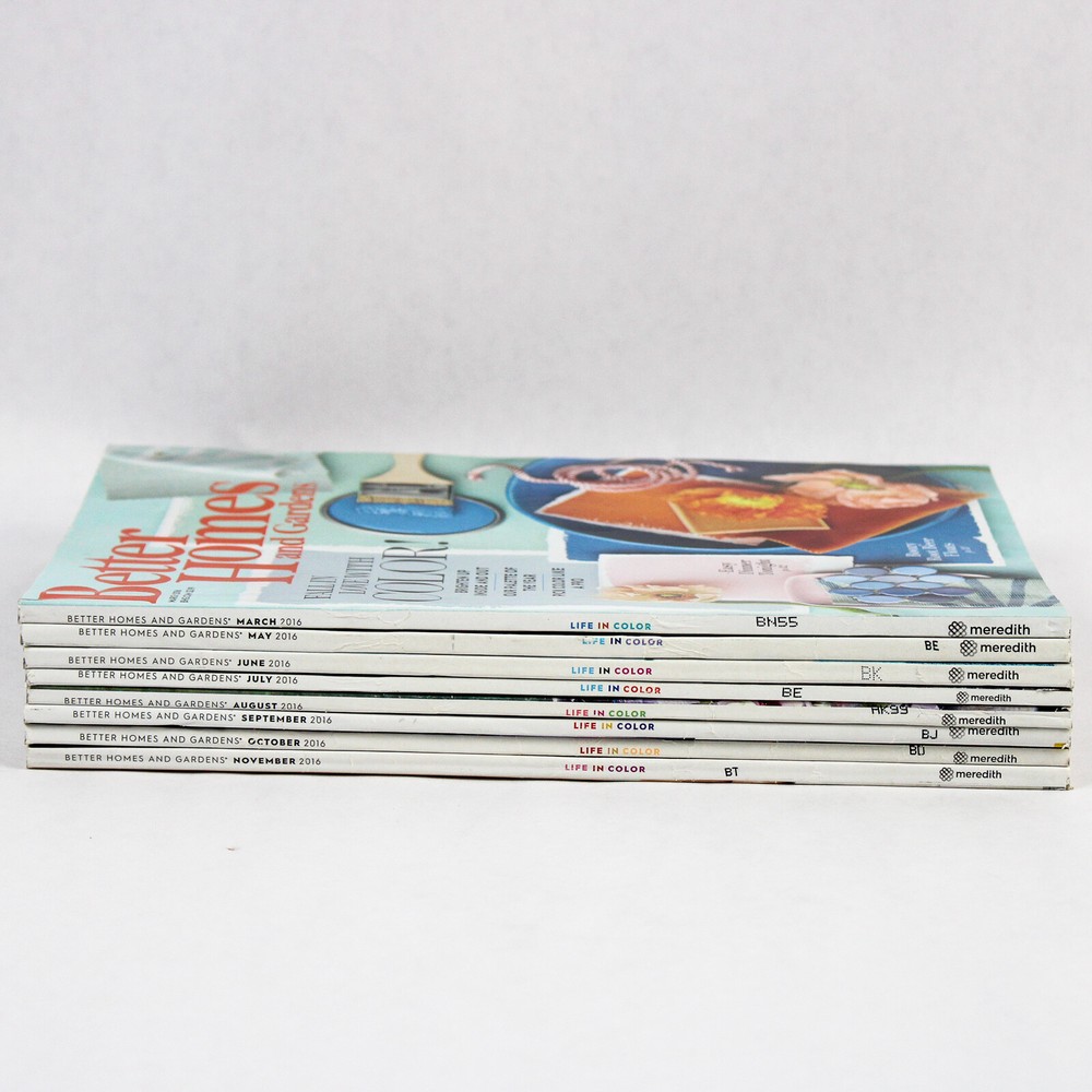 This lot features 8 issues of Better Homes and Gardens from March and May through November 2016. They are in good pre-owned condition, with some sticky residue from old address labels. A must-have for collectors and fans of home and garden inspiration!