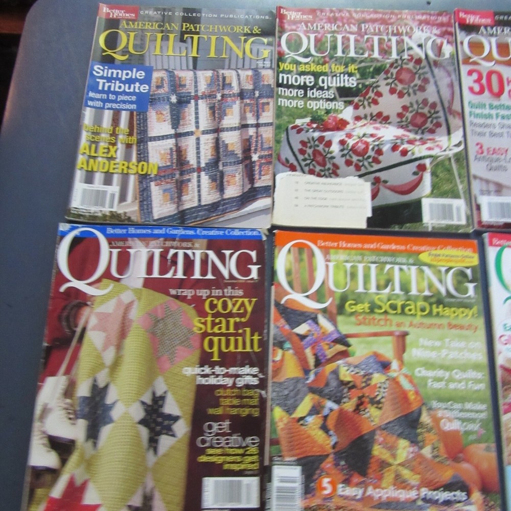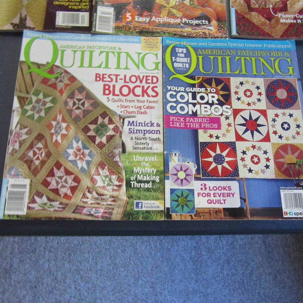 This lot includes eight issues of Better Homes and Gardens American Patchwork & Quilting magazines, filled with inspirational ideas for all your sewing projects. Written by various contributors and published by Meredith Corp., these monthly publications feature beautiful illustrations and cater to the hobbies and crafts of its readers. Each magazine is in English and was printed in the United States, making them a great addition to any collection. Whether you're a seasoned quilter or just getting started, these magazines are sure to provide you with endless hours of creativity.Sold as one lot of 8 only. June 2003, April 2004, December 2004, December 2005, October 2007, December 2009, June 2010, June 2016.