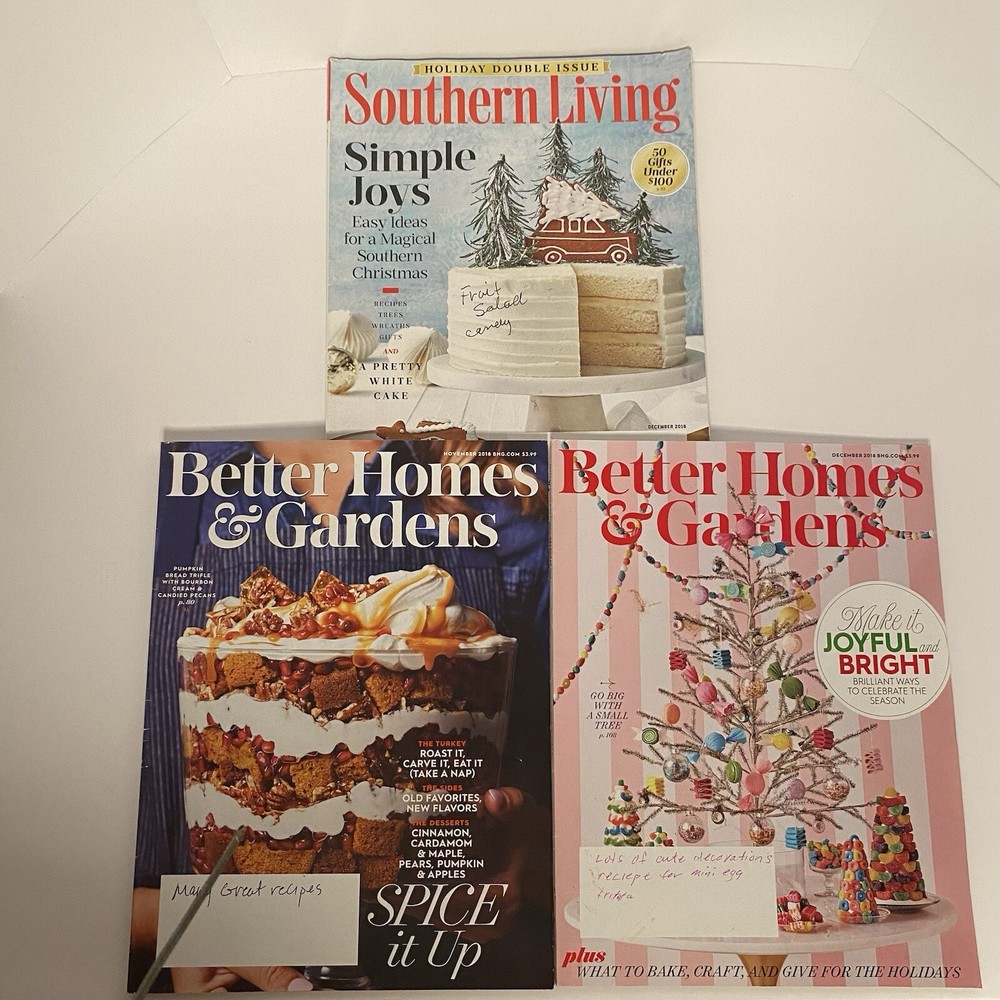 Get inspired with this lot of three Better Homes and Garden and Southern Living magazines from the holiday season of 2018. Filled with beautiful home and garden ideas, DIY projects, and delicious recipes, these magazines are perfect for anyone looking to spruce up their living space during the festive season. With a focus on holiday-themed topics, these magazines are a great addition to any home decor enthusiast's collection. Don't miss out on the chance to add these publications to your library and gain inspiration for your next holiday project.