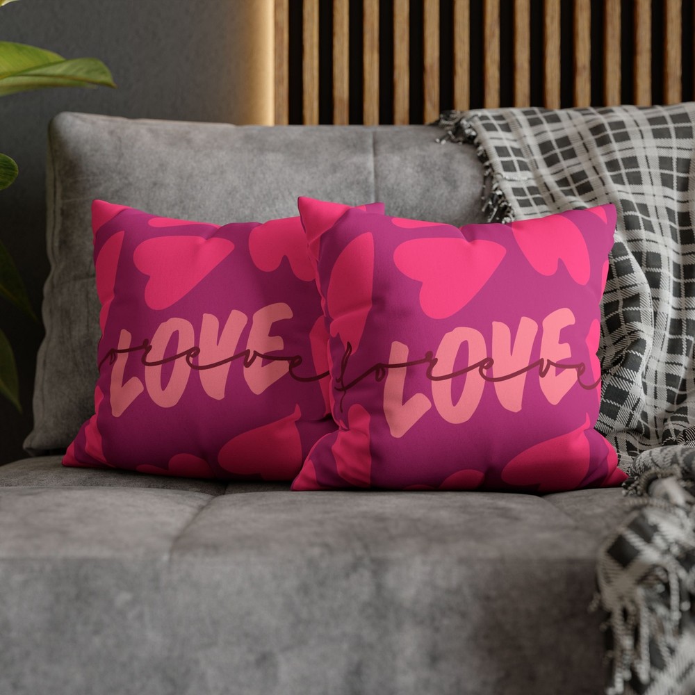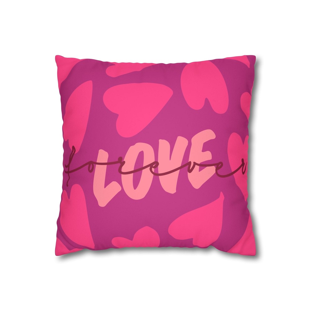 Love Heart Faux Suede Pillowcase Transform your living space with this vibrant Faux Suede Square Pillowcase. Featuring a playful heart design, it adds a pop of color and warmth to any room. Made from soft, durable faux suede, this pillowcase invites comfort and style. It's perfect for cozy nights in, creating a fun atmosphere for gatherings, or simply brightening up your everyday decor. Ideal for anyone who loves modern decor, this piece makes a thoughtful gift for friends and family, especially for occasions like Valentine’s Day, anniversaries, or housewarming celebrations. Show your love and style with this charming addition to your home! Product features - 100% Faux Suede: Soft and durable animal-friendly material. - Concealed Zipper: Sleek design with a beige zipper that blends seamlessly. - Double-Sided Print: Eye-catching design on both sides for versatile styling. - Perfect Fit: Recommended to use inserts 2" larger for a plump finish. - Note: Pillow insert not included; size may vary slightly. Care instructions - Remove the pillow cover. Pre-treat the stains with soft cloth or bristle brush that had been soaked in warm soapy water. Machine wash, max 40°C (104°F), normal cycle. Do not bleach, tumble dry on low, do not dry-clean. Iron, steam, or dry low heat only. Fluff to reshape when assembling it back together.