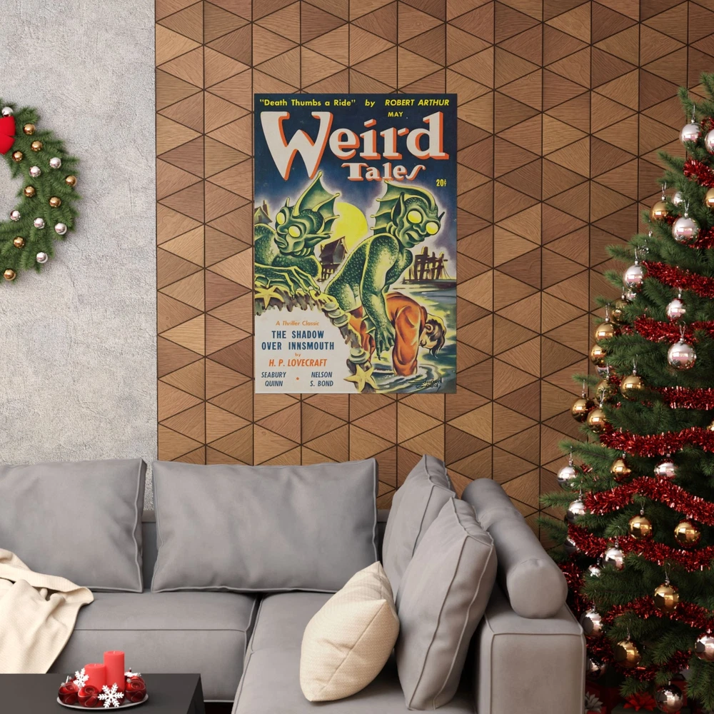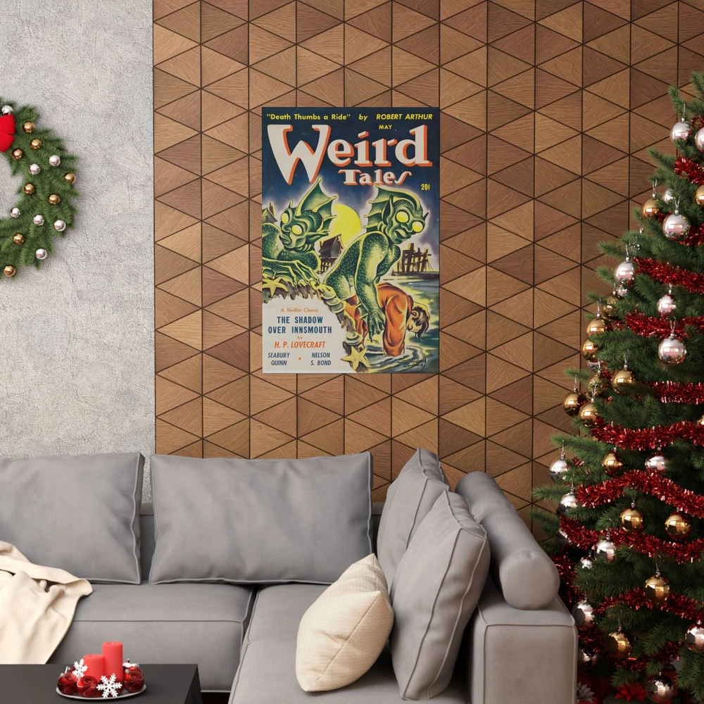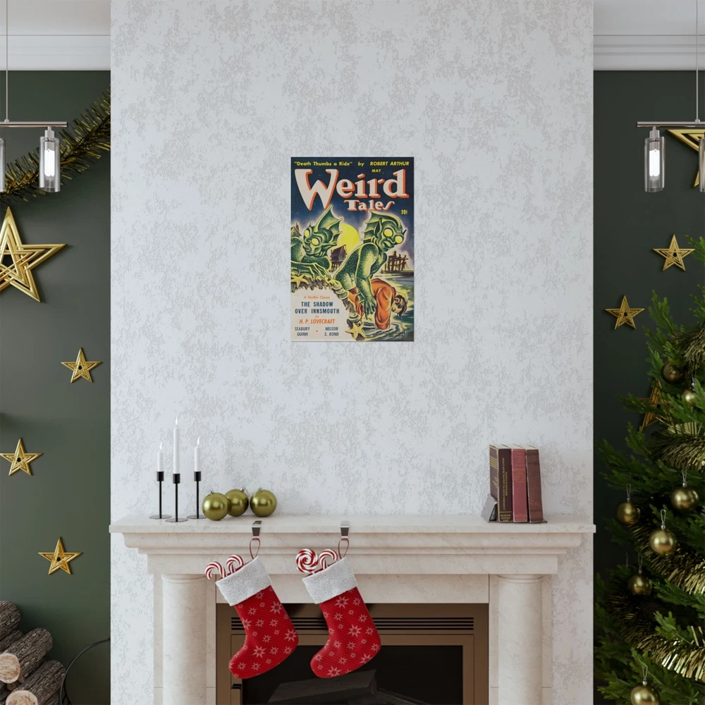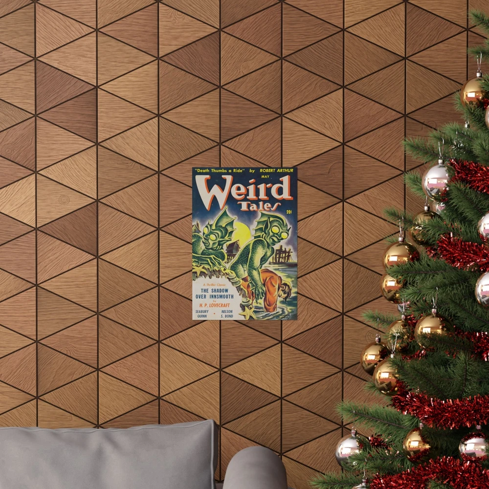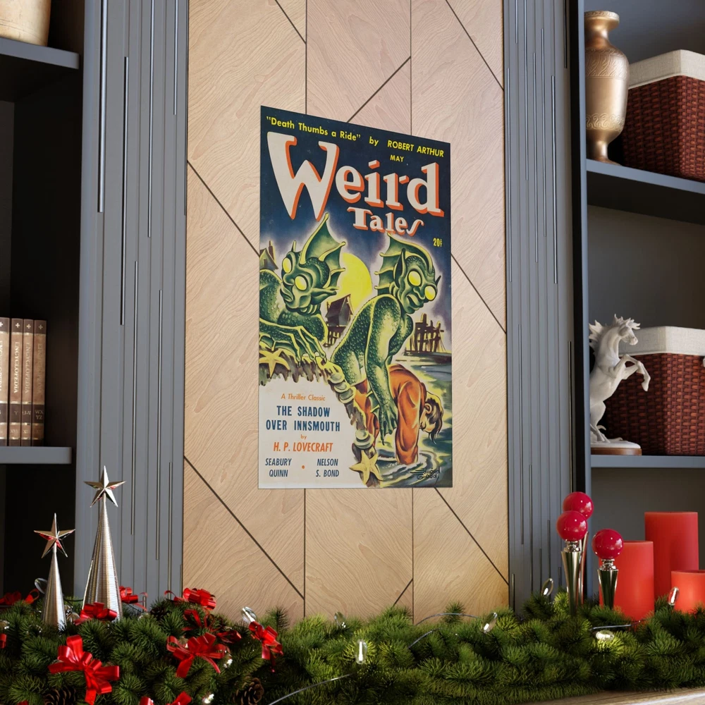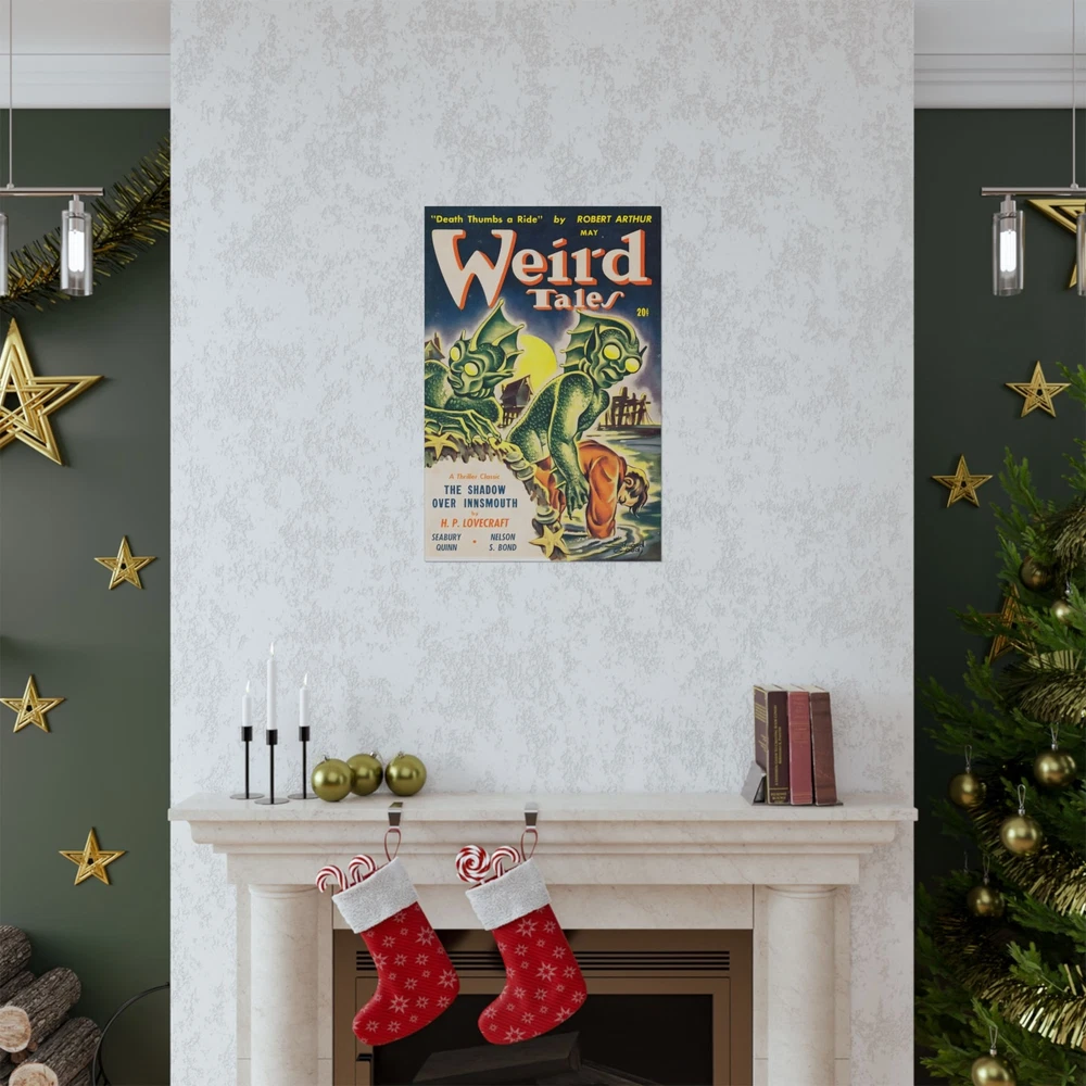 Behold this captivating piece of vintage-inspired art that brings the mystique of H.P. Lovecraft's universe to life! This premuim poster showcases the iconic pulp cover from 1942 Weird Tales, featuring eerie imagery and evocative typography that captures the essence of Lovecraftian horror. The matte poster is printed on high-quality paper, ensuring durability and clarity of detail. Whether you're a dedicated Lovecraft enthusiast, a collector of retro art, or simply a fan of the macabre, this poster makes a striking addition to any space. Immerse yourself in the enigmatic world of Lovecraft's cosmic horror with the Shadow over Innsmouth Matte Poster—a timeless piece that pays homage to one of the most influential writers of the genre. .: Made with museum-grade archival paper (175gsm) for excellent printing fidelity and vibrant color reproduction. .: For indoor use only .: Assembled in the USA from globally sourced parts