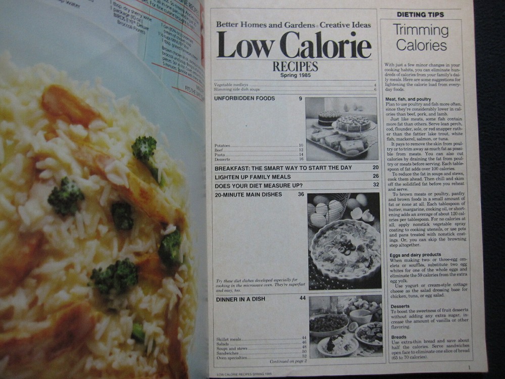 Free Shipping! Thank you for supporting Thomas Charities! Low Calorie Recipes Better Homes and Gardens Creative Ideas Spring 1985 [Single Issue Magazine] Better Homes and Gardens Author: Publisher: Release Date: Seller Category: -- Qty Available: 1 Condition: Used: Good Sku: S7-9HHX-L7J9 Notes: General wear and aging. Don't forget to check out other great deals in our eBay Store!! Our eBay online store is run entirely by volunteers! Thomas Charities is a Christian 501(c)3 tax-exempt nonprofit humanitarian organization dedicated to empowering and encouraging those without the resources to sustain themselves. Overseas we provide mobile medical clinics, promote literacy and health education, and develop micro-enterprises for women/widows/orphans in East Africa. Disclaimer: All items are graciously donated from the general public and their content may not reflect the values or beliefs of Thomas Charities.