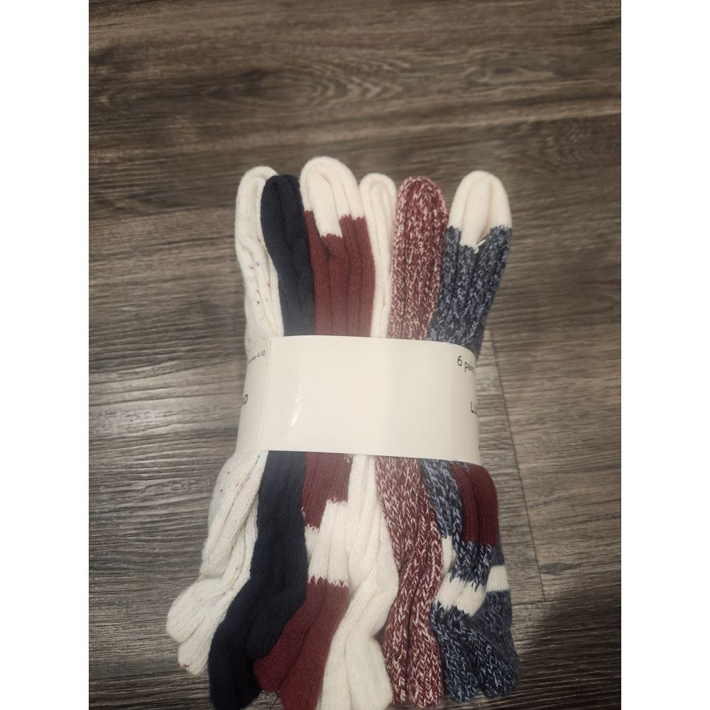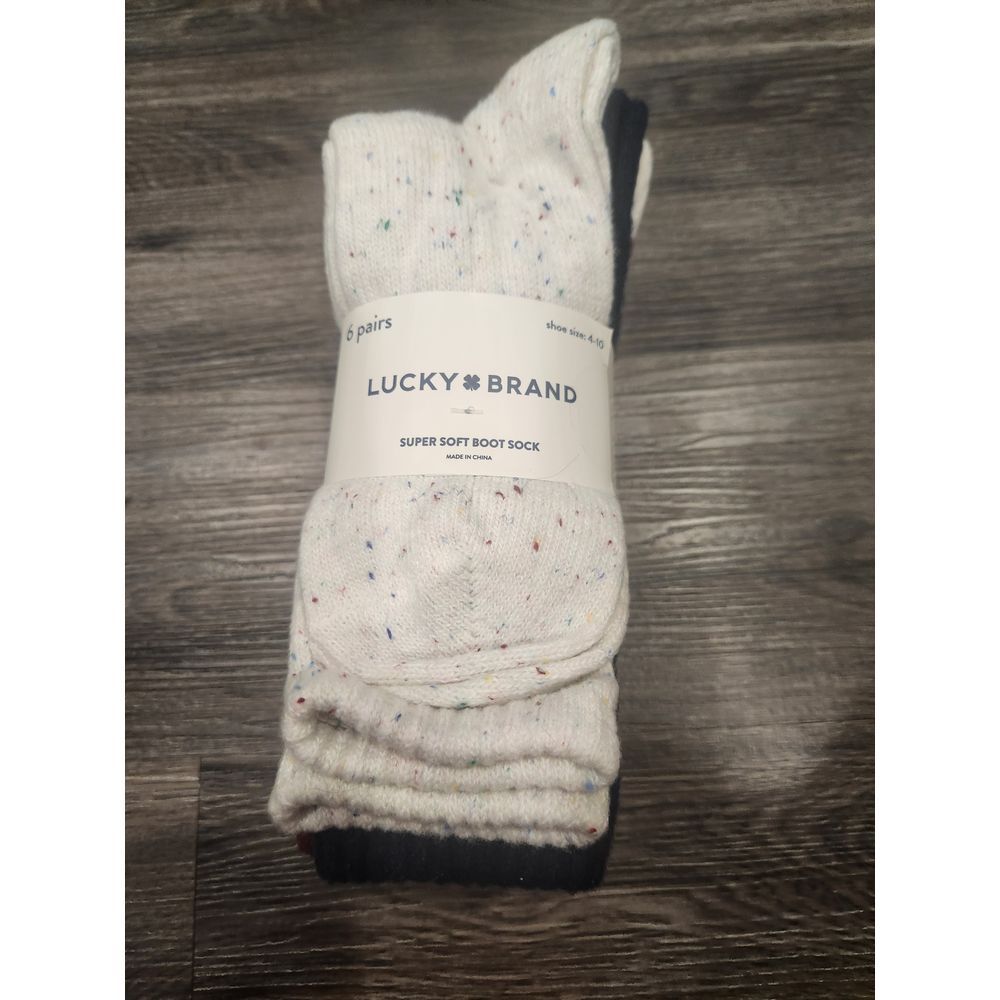 SKU:230 Lucky NWT Embrace ultimate comfort with this premium Lucky Brand sock collection. Each pair showcases thoughtful design elements including marled textures, classic stripes, and speckled patterns in a sophisticated palette of navy, burgundy, &crisp white. The socks feature a perfectly balanced blend of materials that delivers both warmth and breathability, while the reinforced toe and heel areas ensure lasting durability. A comfortable stretch top maintains a secure fit without feeling constrictive. The versatile designs transition seamlessly from casual weekend lounging to outdoor winter activities, making them ideal for both cozy nights in & active days out. Keywords: lucky brand socks, winter socks, boot socks, multipack socks, marled socks, striped socks, speckled socks, cozy socks, navy socks, burgundy socks, white socks, comfortable socks, casual socks