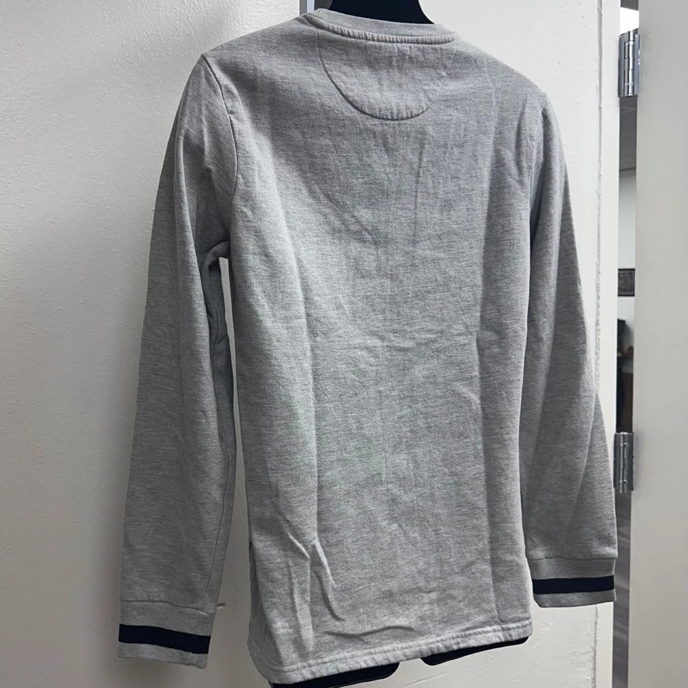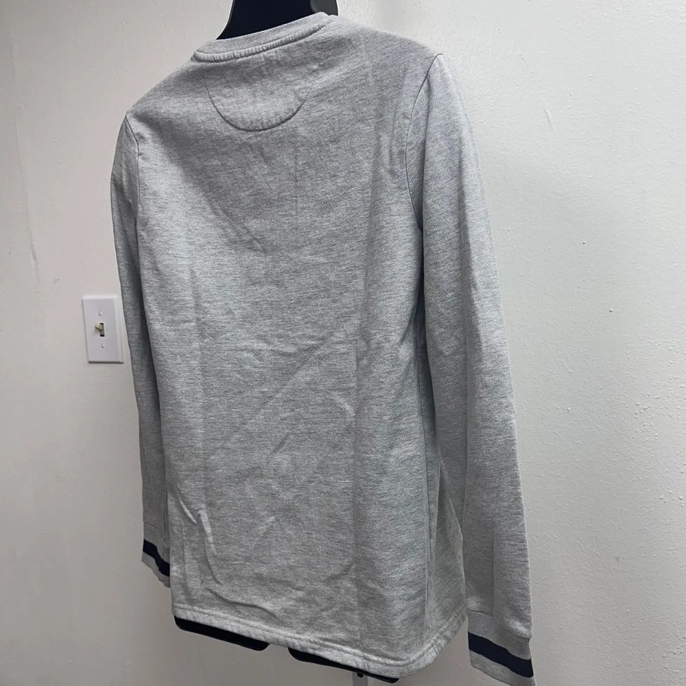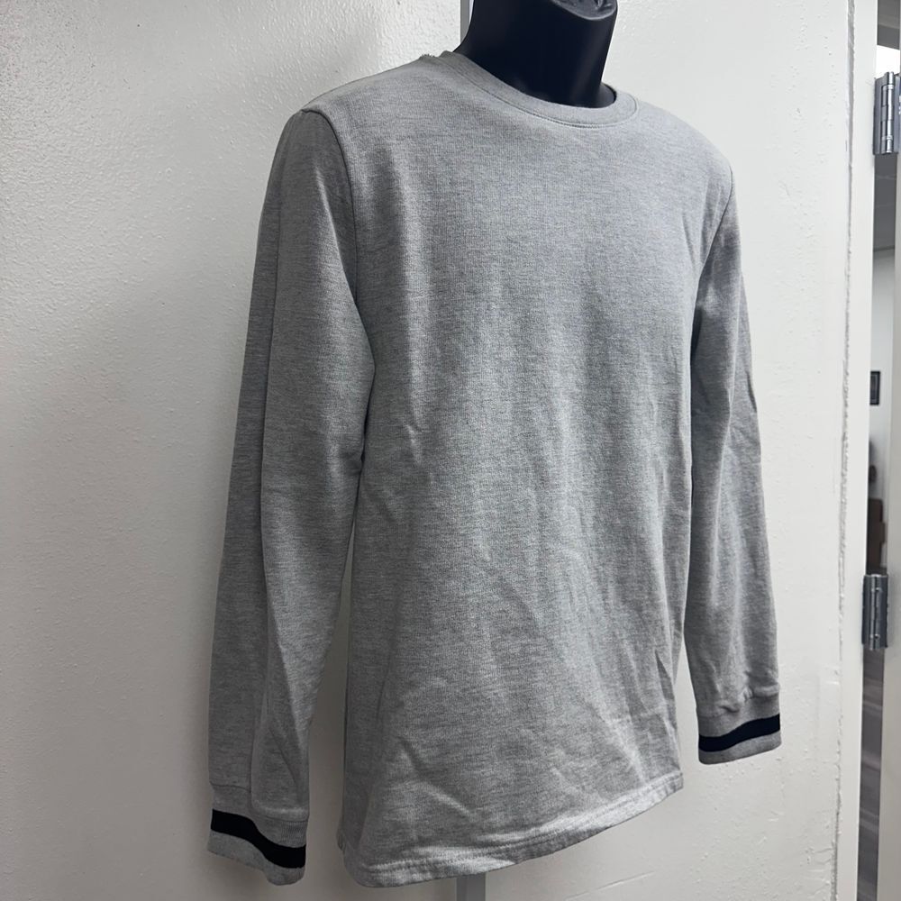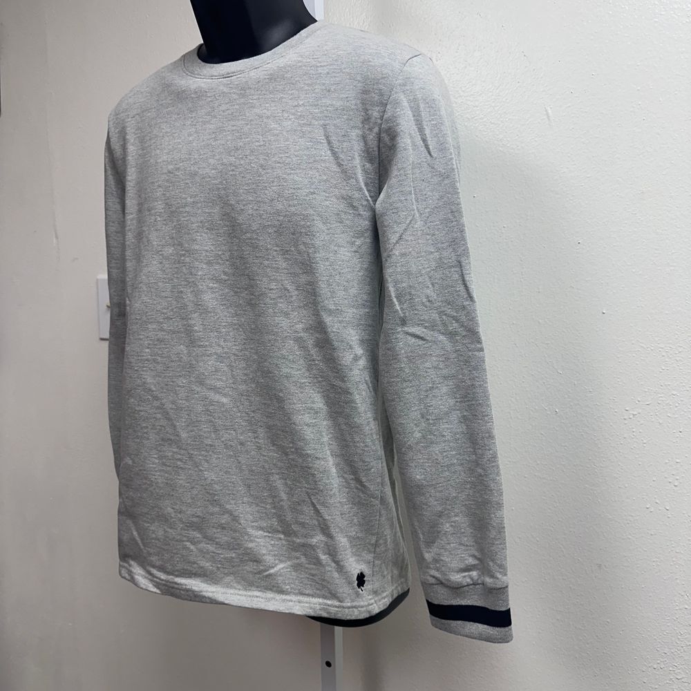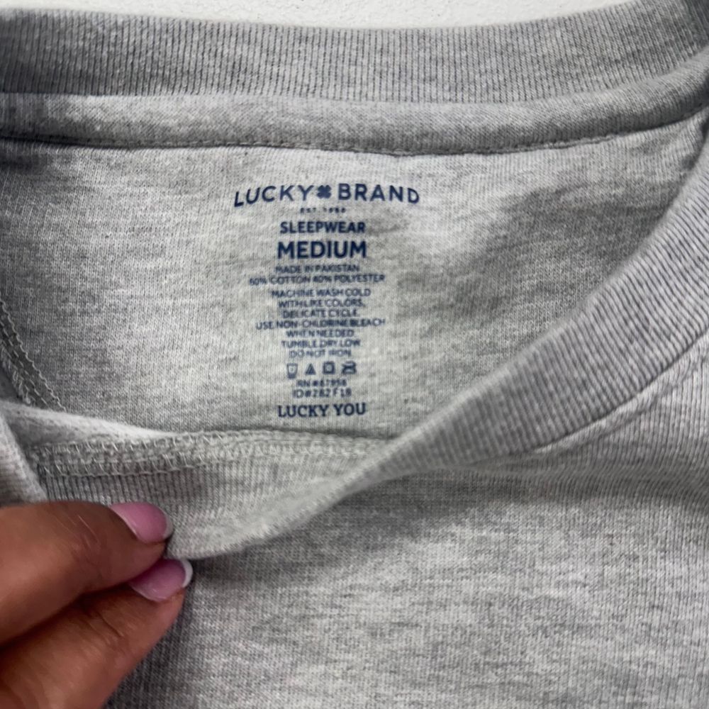 Cozy and comfortable Lucky Brand sleepwear top perfect for relaxing evenings and lazy weekends. Features a classic crew neck design with distinctive navy striped cuffs for a subtle style accent. The soft cotton-polyester blend fabric ensures breathability and durability. Ideal for year-round lounging, Netflix marathons, or casual morning coffee on the porch. The versatile heather gray color pairs easily with any pajama bottoms. Color: Gray Department: Men Type: Pajama Top Fabric Type: Blended Fabric Material: Cotton Blend, Polyester Character: Cozy, Comfort, Dreamy, Snooze, Rest Pattern: Solid Sleeve Length: Long Sleeve Season: Fall, Winter, Spring Features: Lightweight Keywords: lucky brand sleepwear, mens pajama top, long sleeve loungewear, gray sleep shirt, cotton blend pajamas, mens sleepwear, comfortable loungewear, casual sleep top, navy trim